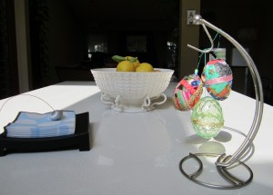 Easter eggs that is. Easter came and went 30 days ago if you observe the Gregorian calendar that was introduced by Pope Gregory XIII in 1582, also called the Western calendar, the Christian calendar or the internationally accepted civil calendar. If you are like me and follow the over 1,600 year-old Julian calendar, established by Julius Caesar in the year 46 BCE, it flew by 23 days ago and yes, I still have my eggs on display. My cheeks are blushing with shame—I preach about keeping a tidy and organized space and I’m caught red-handed.