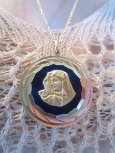 One day I received a package and was deliriously surprised when I opened it to discover all her gilded icons cushioned in styrofoam peanuts to endure their cross-country journey. Truly honored that they were bestowed onto me, they are displayed collage style on a wall where I view them every morning and every night, reminding me of her pathos.