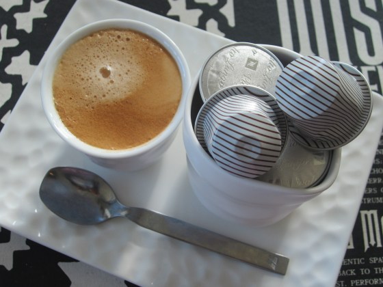 My latest love Nespresso coconut capsules (to my disappointment this limited edition coffee is sold out word wide) so I will savor the last capsules I have and will not be bringing coconut joy to friends with Nespresso machines this season. They are the only white Nespresso capsules with stripes of coconut.