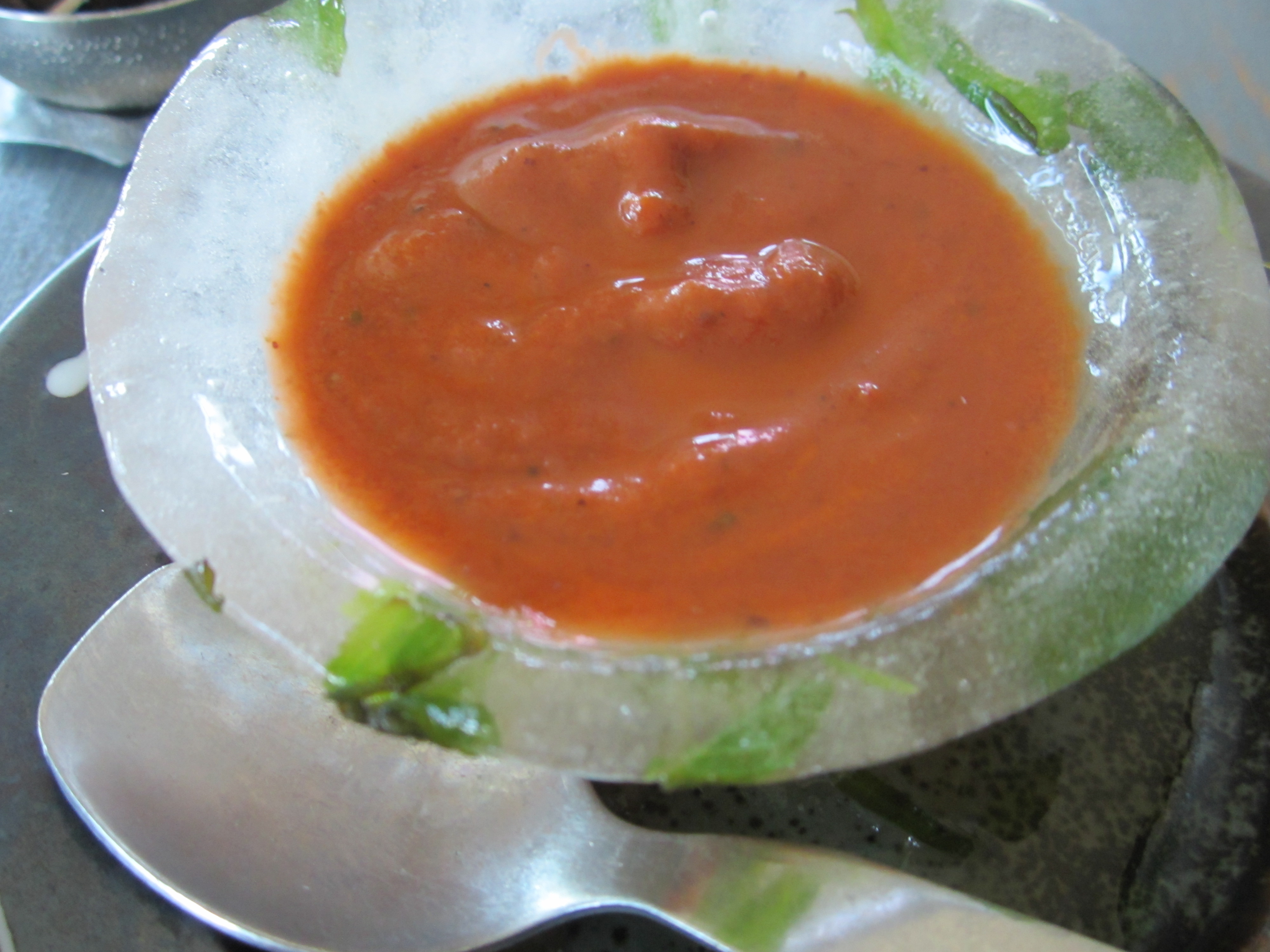 After a quick oven roasting, half of the tomatoes were saved for the pies while the rest was spiced up for a summer afternoon gazpacho served in ice bowls thanks to La Receta de la Felicidad.