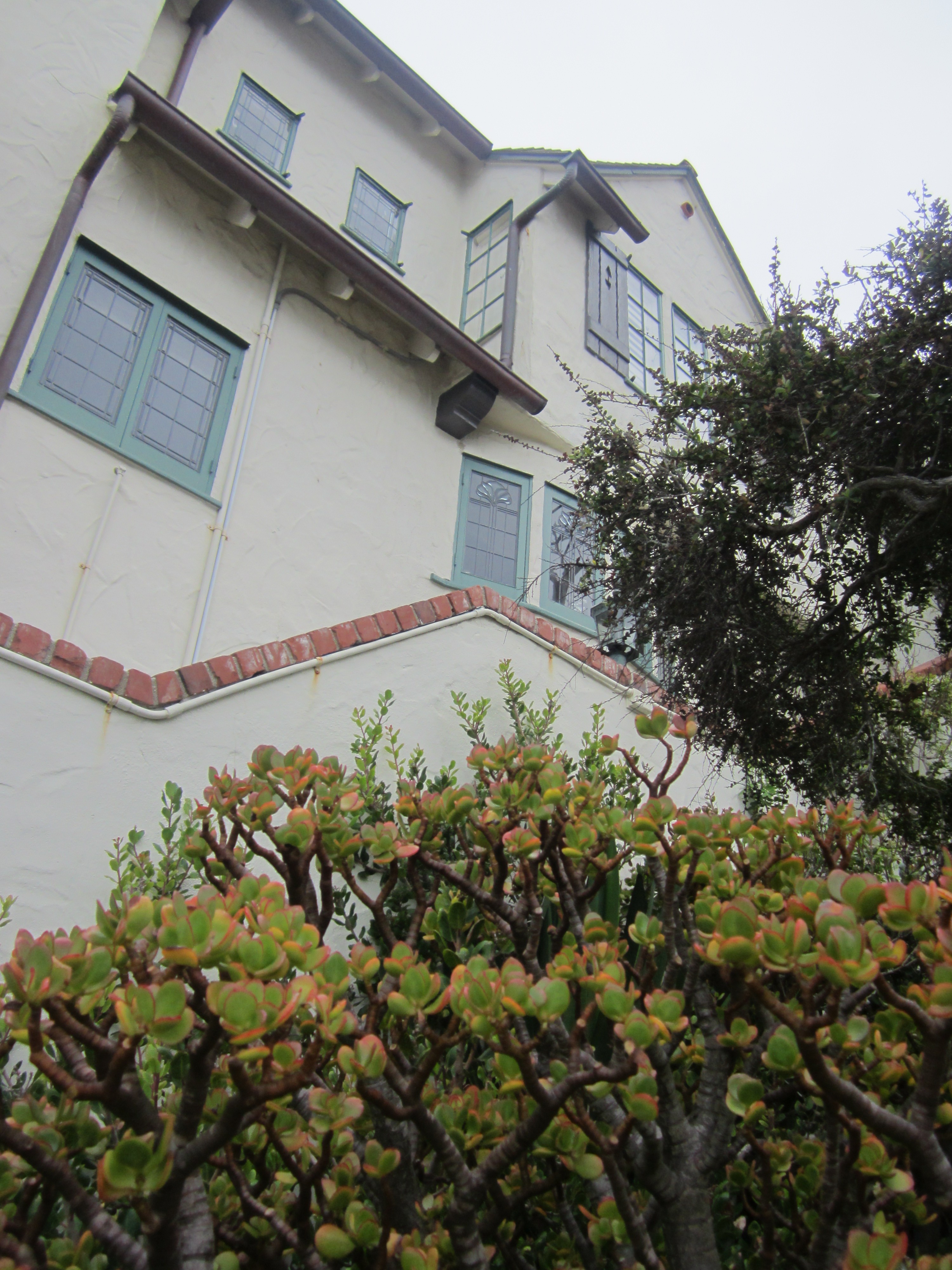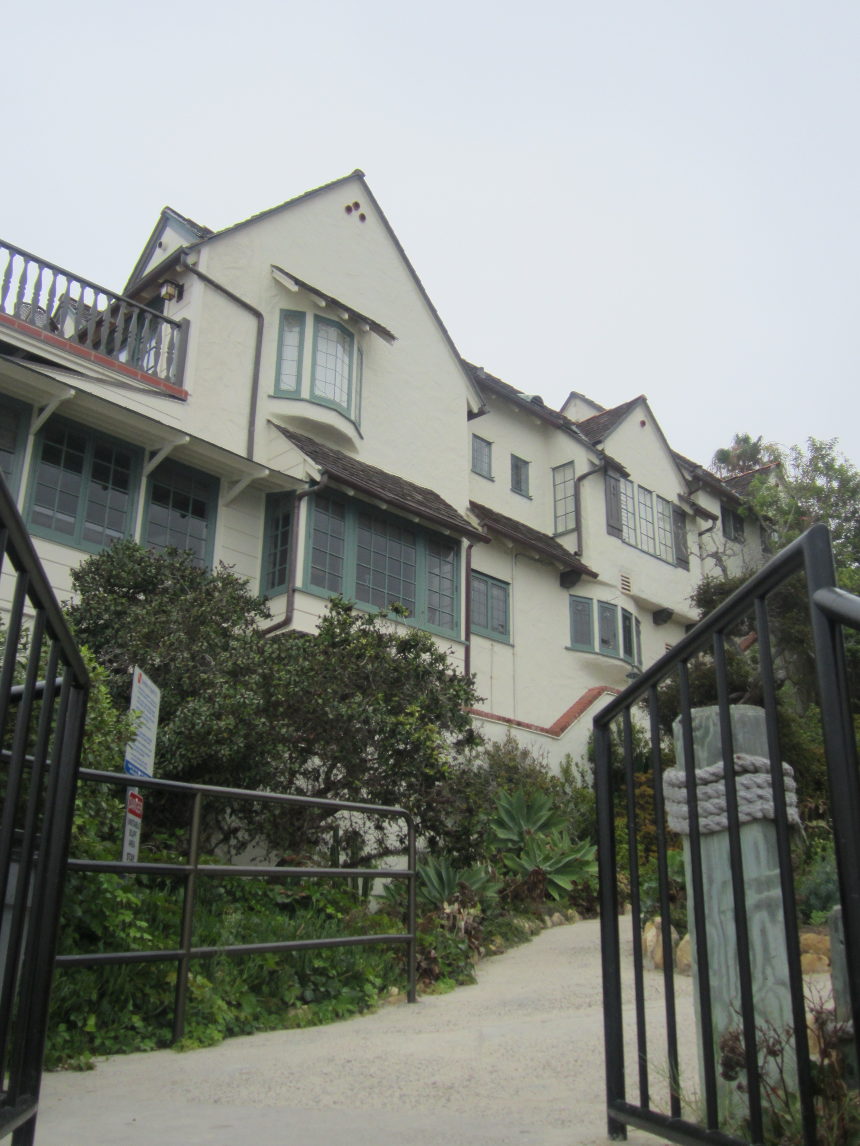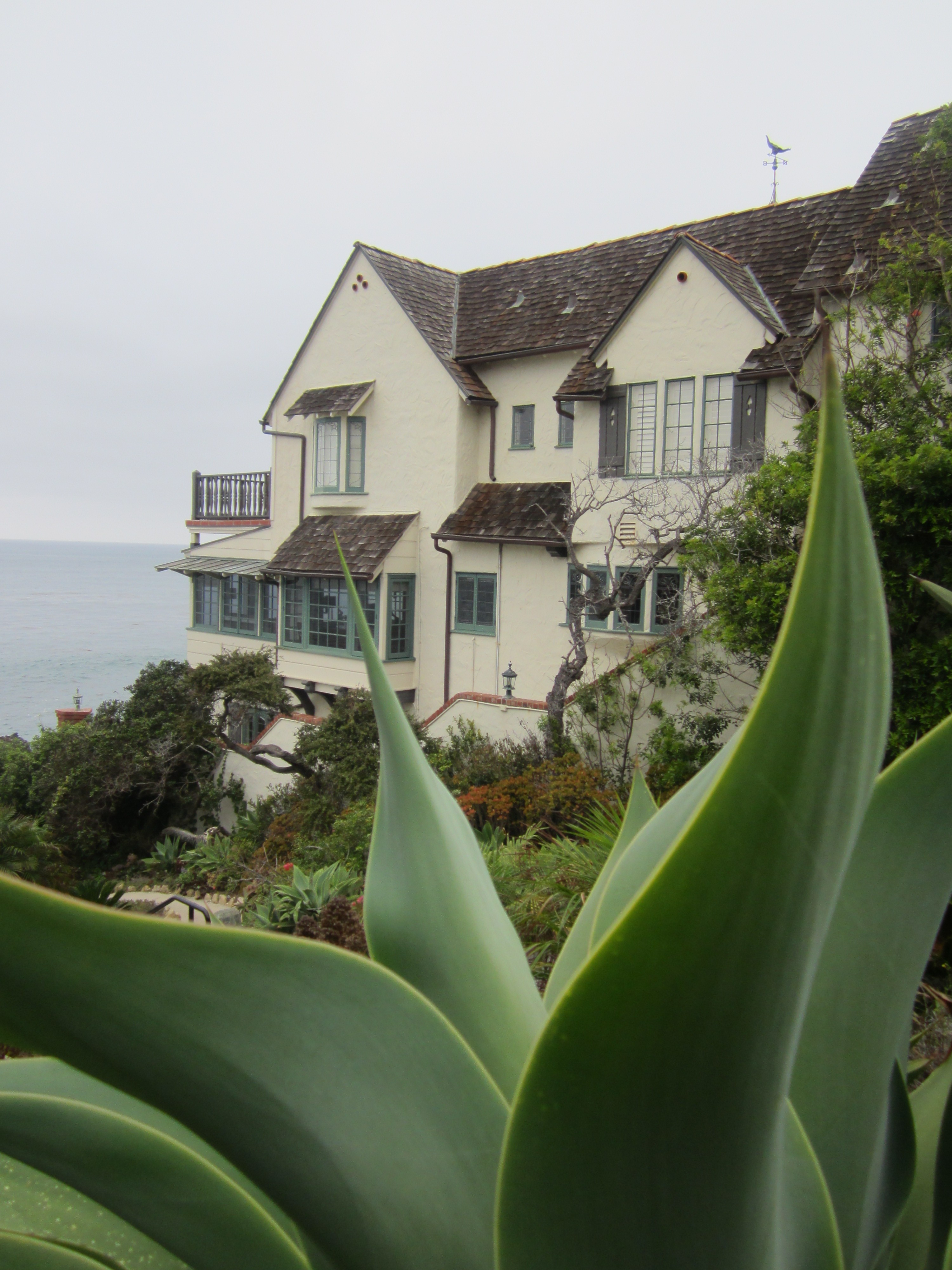 —she gave a fabulous curb appeal too! It was a pleasant surprise one June Gloom morning when I looked up from a Laguna Beach stroll to see this not-so–humble abode in front of me in Woods Cove.