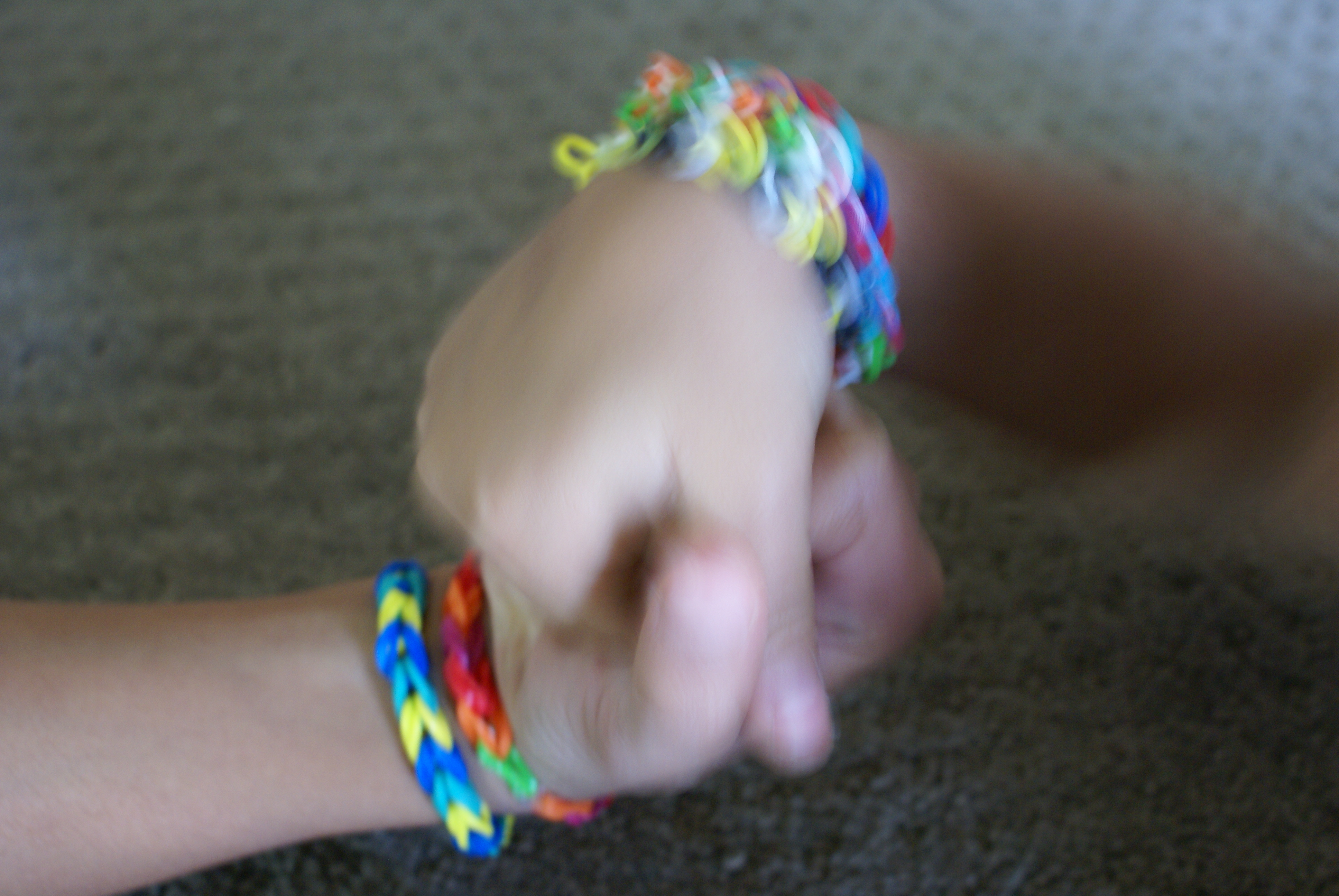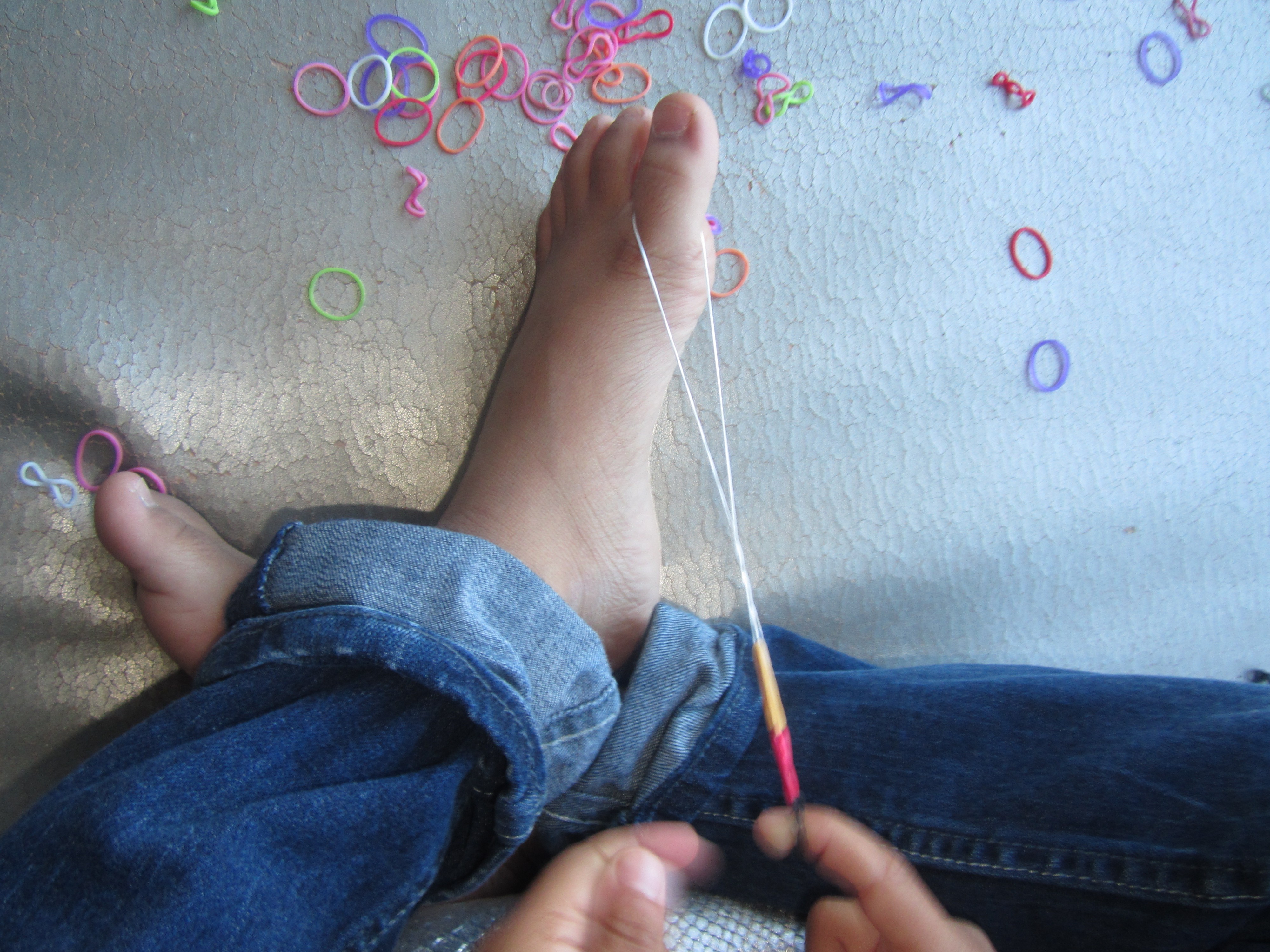 This little Rainbow Loom establishment has taken off in our nest. It first started sans the loom working with just the digits.