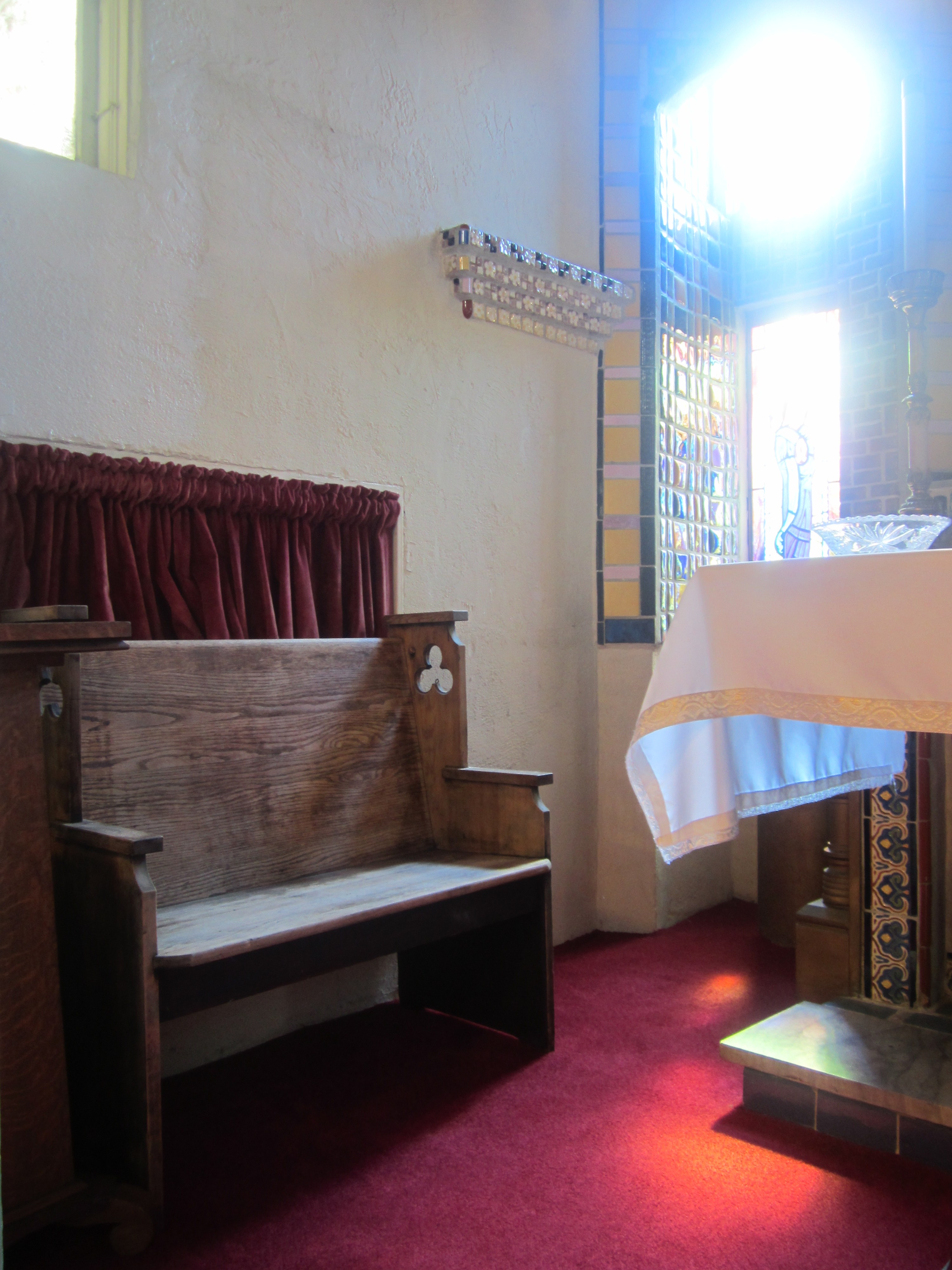 Is it the spirit-filled feelings that entice us to the House of God or any house for that matter? One Saturday not too long ago, I was strolling along with a group led by fearless botanical leader,Ruben Flores, and we entered upon such a magical nest. There was no Easter Vigil, not a single candle lit, no frankincense or myrrh wafting in the air, just the warmth of the tiny cathedral built in the shadow of the imposing St. Mary’s Episcopal Church. Something about its infinitesimal size and its simple décor that touched our hearts.