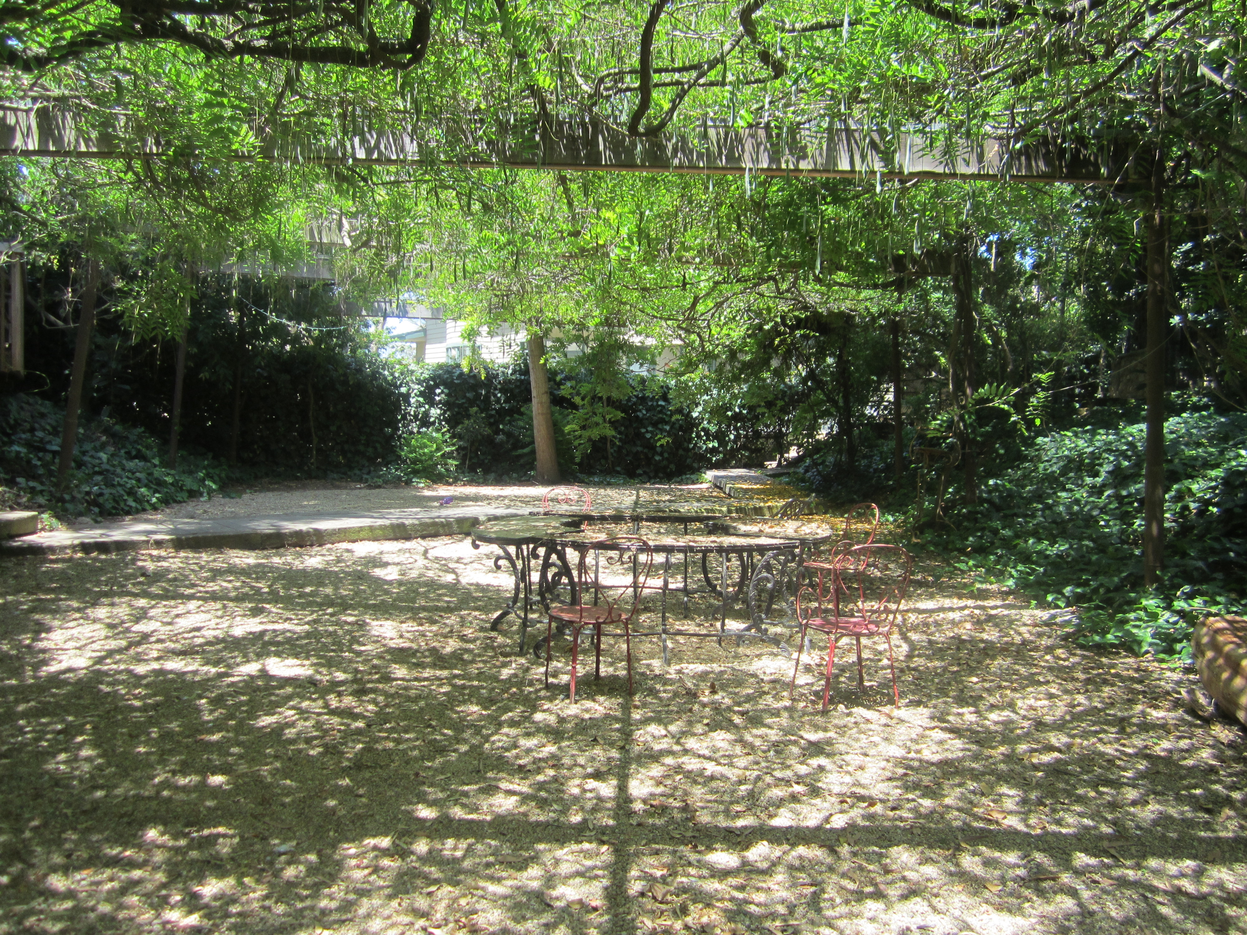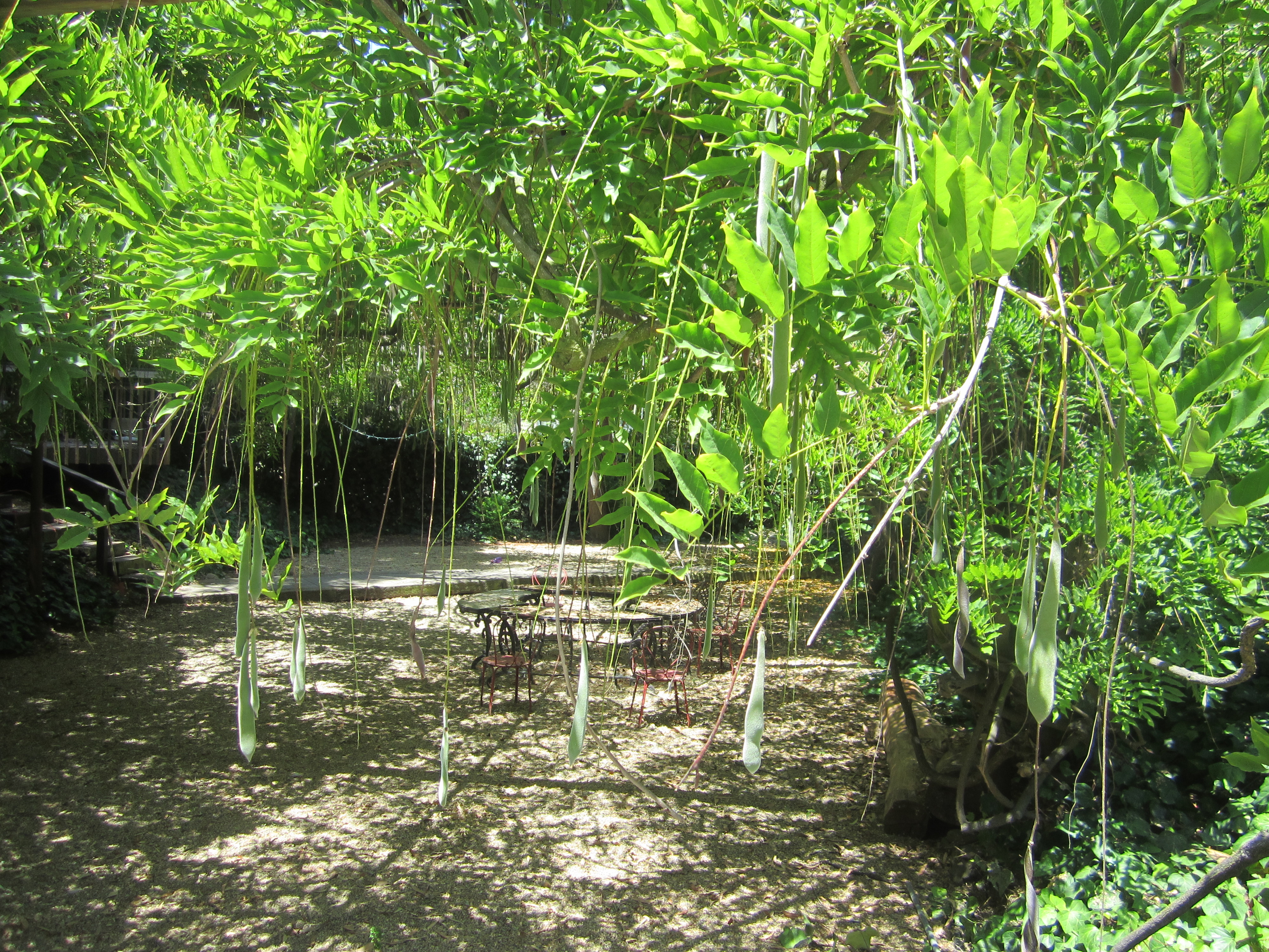 IMG_6990How about this setting for a soiree? I pranced across this magical place on one of my LB garden walks https://www.facebook.com/LagunaNursery, yet another nook and cranny to discover along the craggy cliffs of Laguna. This particular finding was tucked away within a private property and thankfully the nest dweller welcomed us wholeheartedly into her not-so-humble lot. So enamored by the soft early afternoon light transcending through the wisteria, I couldn’t help but picture tea and crumpets about to transpire. IMG_6986IMG_6985IMG_6997 Imagine the sweet fragrance of the copious wisteria in bloom—a swift hillside breeze and I bet her neighbor would even transform into a princess without a worry in the world. IMG_6983