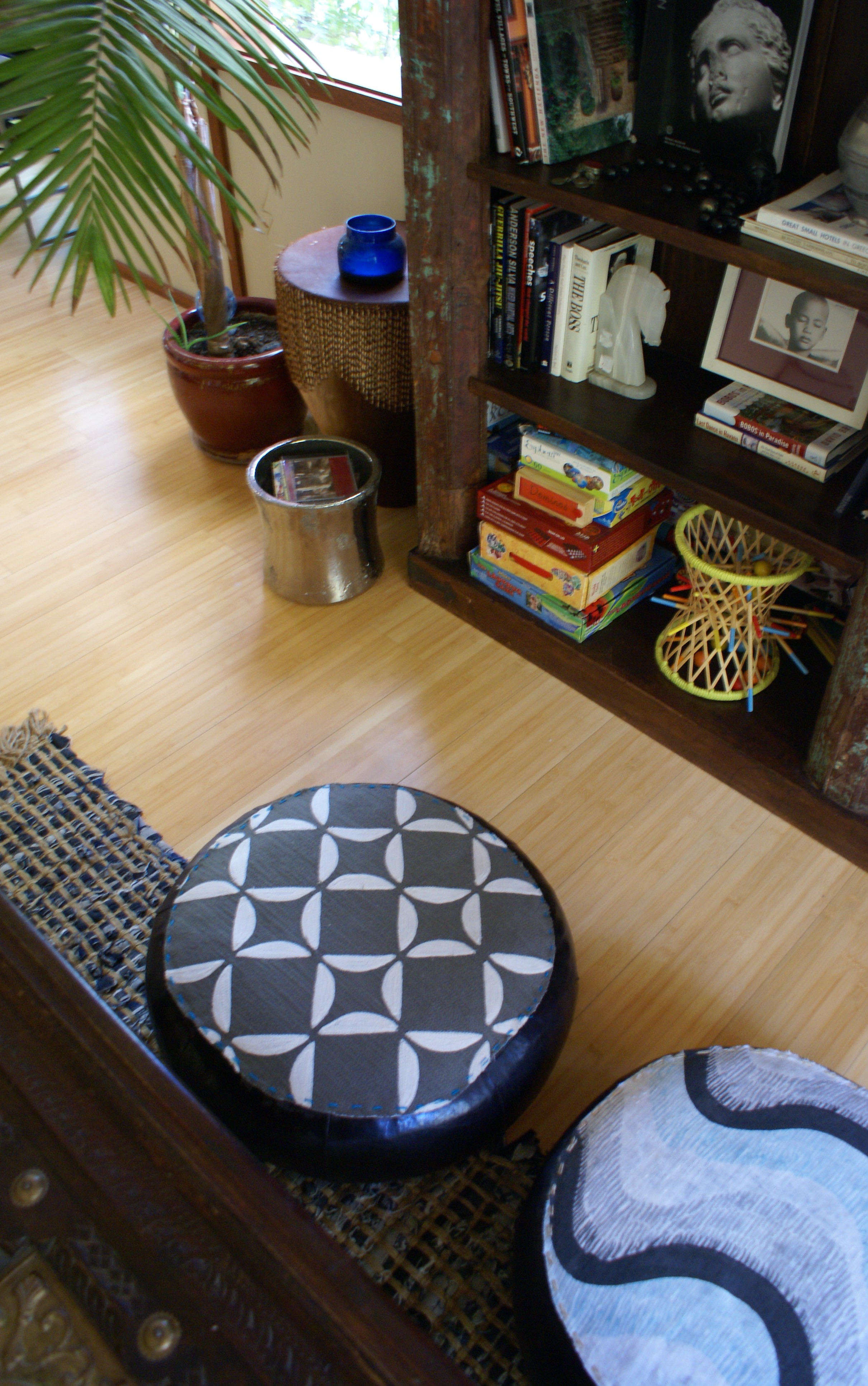 Thank you, the tops of the poof were shredded from years of rough play…my boys preferred to toss, roll or use them as shields rather than sit on them. I had to come up with something so when West Elm had a sale on pillow cases $12.99 each I got out the shears, glue and eventually thread and needle. I am sure your boys will eventually resort to their honed skills from home ec as needed sooner or later in life.