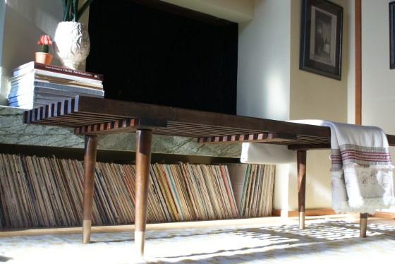 I am mad about settees—I can think of at least three locations for some bad-ass ones in my current nest, although it’s not a priority to glamify my nest right now…all I’m asking for is simplicity, order and cleanliness and I would be thrilled to bits in achieving that trinity. A girl can dream can’t she? In fact, I dreamt of a sitting area in our former nest, but all I managed to do was this want-to-be settee. It’s faux because technically it doesn’t have a back or arms and it’s sans upholstery, however, it can seat two or more persons (at least after I replaced the stripped screw.) A little bit of muscle on my part and voila it no longer wobbles when you sit on it, nor do you have to worry about splinters in your derriere since some light sanding and refinishing took care of that. I did glam it up with a touch of gold as if its pretty pegs were dipped in it. Voila, a celebrity on its own. It did have the company of albums, I managed to find them a cozy place under the fireplace and yes we were able to turn it on even with them consuming awkward space underneath.