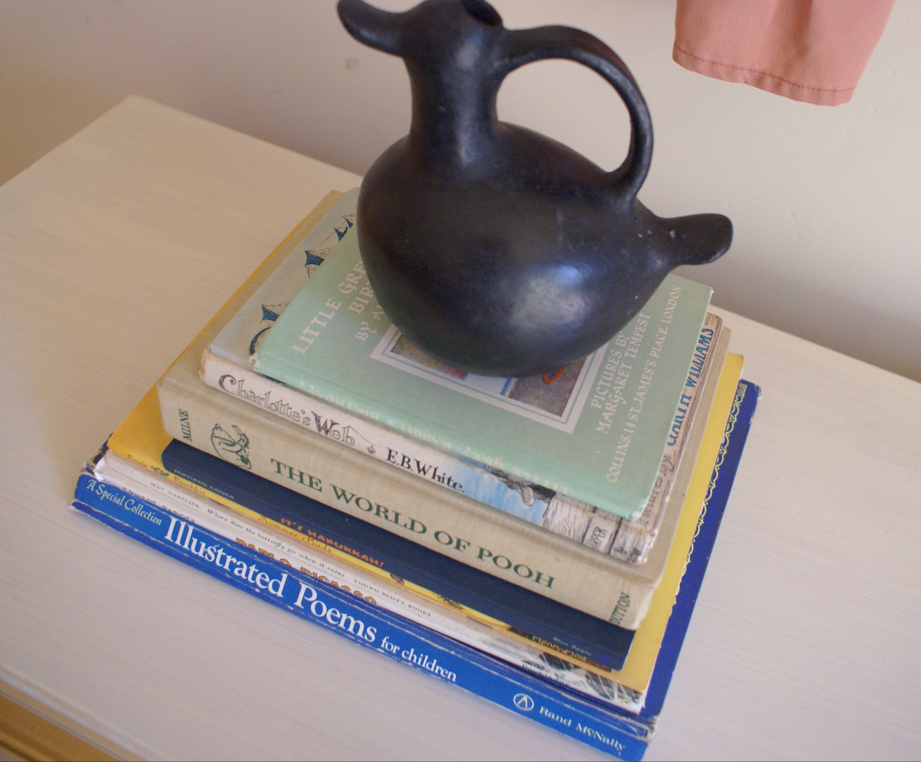 Pierre by Maurice Sendak is middle bear’s favorite read and I love reading Summer Birds to baby bear. Written by Newbery Honor-winning author, Margarita Engle, the book captures the curious soul of Maria Merian. Growing up in the Middle Ages things were certainly different including people’s perception of insects. See what a thirteen year old without electronics can do for the world—she changed the perception of thousands of years dating back to antiquity even to what those ingenious Greeks had believed by watching caterpillars spin themselves into chrysalises and cocoons and later bursting out to reveal summer birds or butterflies and moths. While we haven’t been participating in many summer fetes this season, we rarely will pass up a garage sale…you never know what you may find. How’s your summer reading going? Hope you have a chance to snuggle under those sheets for a bit longer in the am cradling a captivating book. Cheers to endless ocean horizons, especially mauve infused ones, our budding pomegranate, citrus and fig trees (even if they are in pots) and to the love of reading this summer, oh yes and to those summer birds.