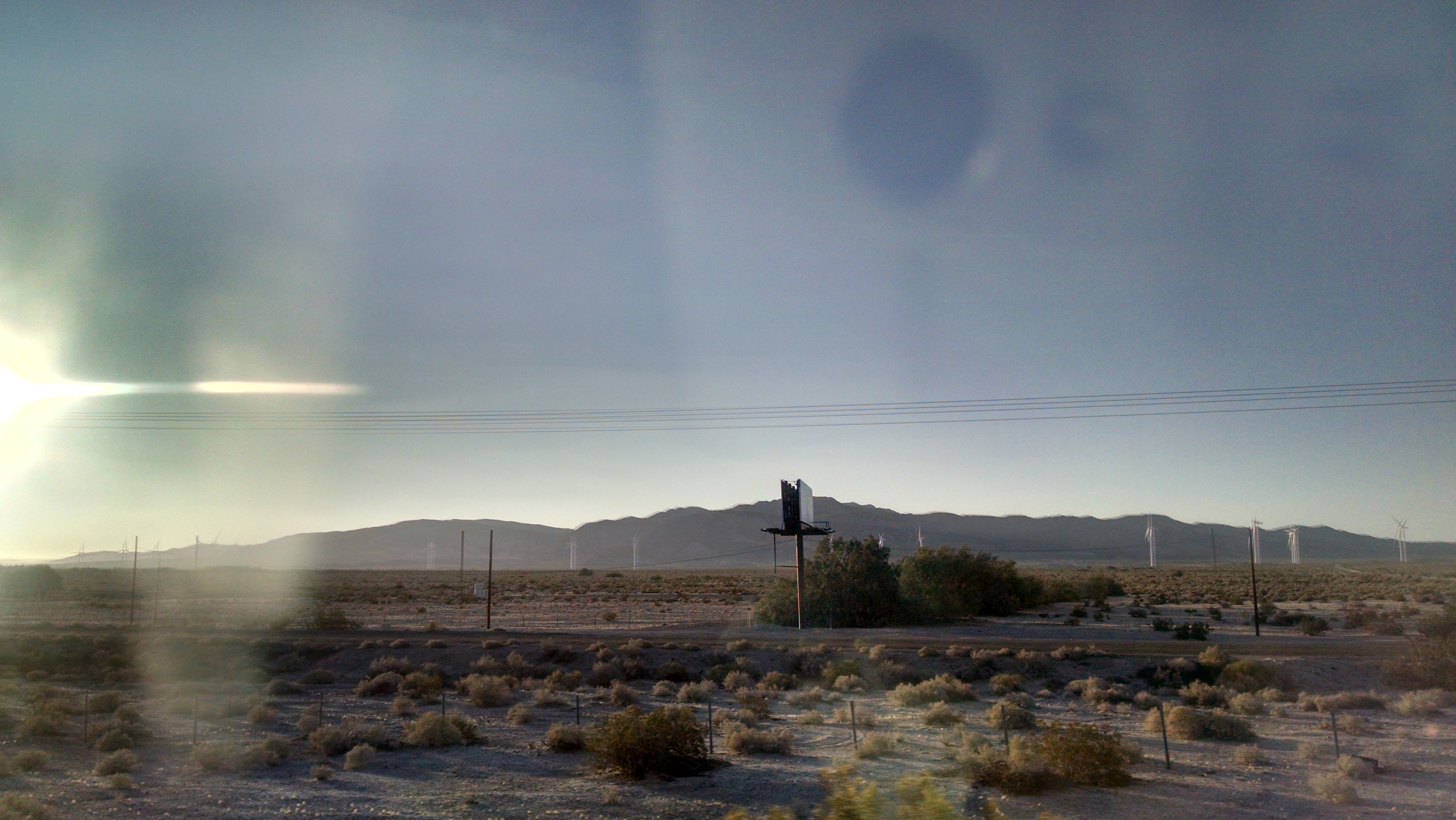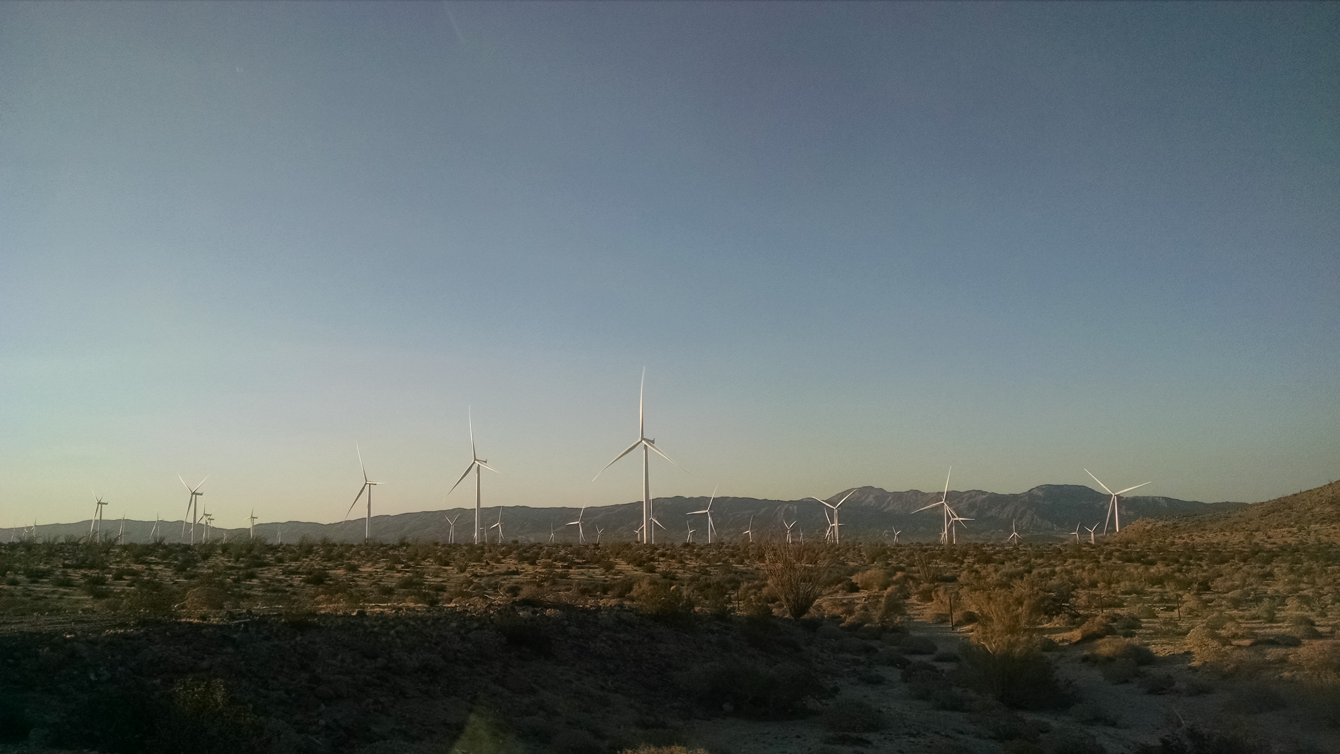 Seeing glimpses of the Colorado River was a sweet reminder of how lucky we are in this neck of the woods to be able to access her grandeur. Yet I wonder (worry) at the rate we’re consuming this almighty river will she be little more than a memory like the paddle steamers and steamboats that once tried up the Grand River. Then there was the scene of the heat-harboring sand dunes under the late afternoon sun, swirled into jagged foothills. Next time we pass through this blazed region they will have morphed into another attritional landscape. A shocking peek at a black bear just before sunset probably foraging for his dinner, a surprise shadow climbing up from a sewer grate…courage young and determined man, you made it this far but your journey has just begun a few miles across the border you fled. The churning windmills in the distance…even in the vast desert land these monumental mechanisms whirl amongst the backdrop of the setting sun for an astounding display.