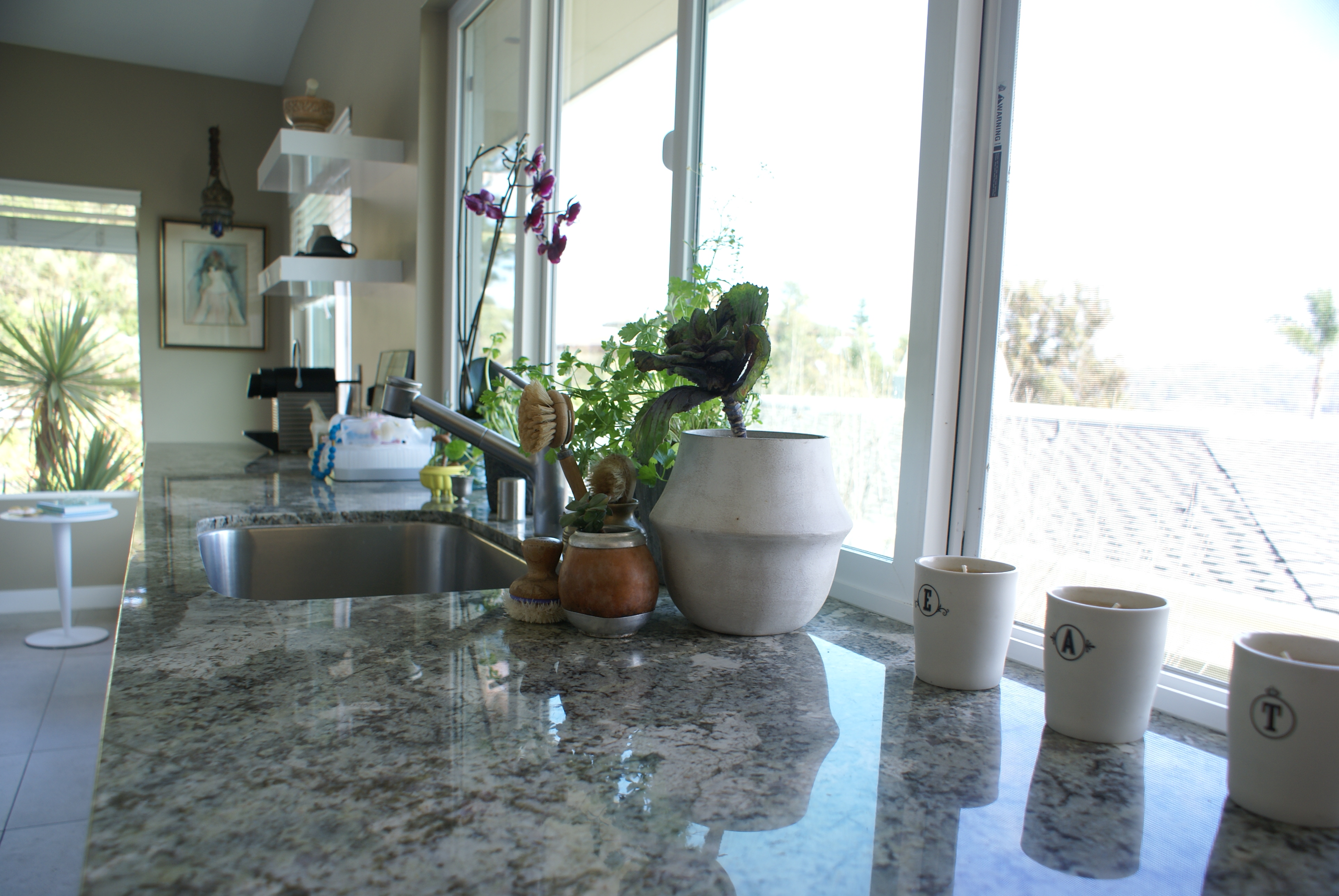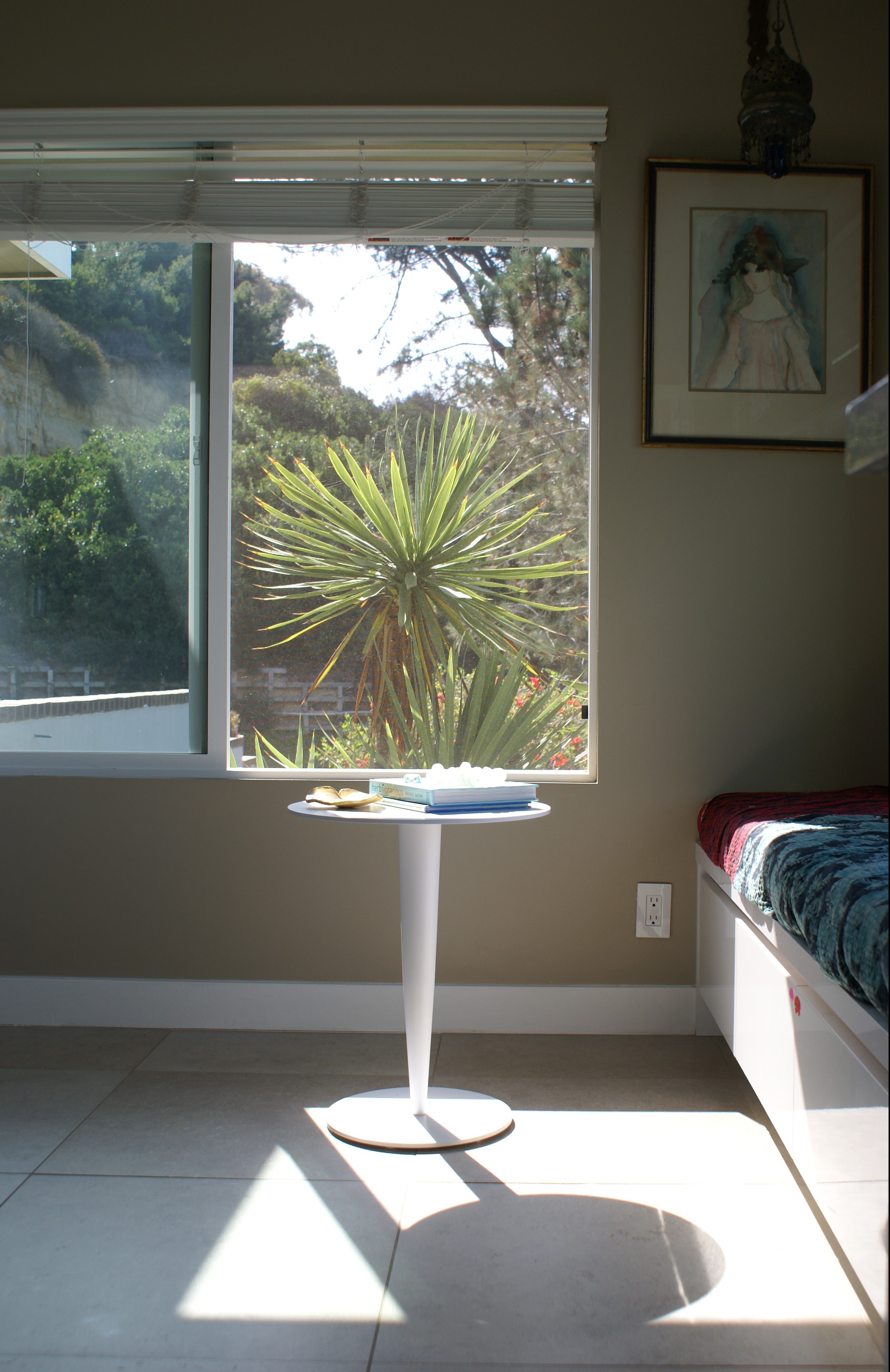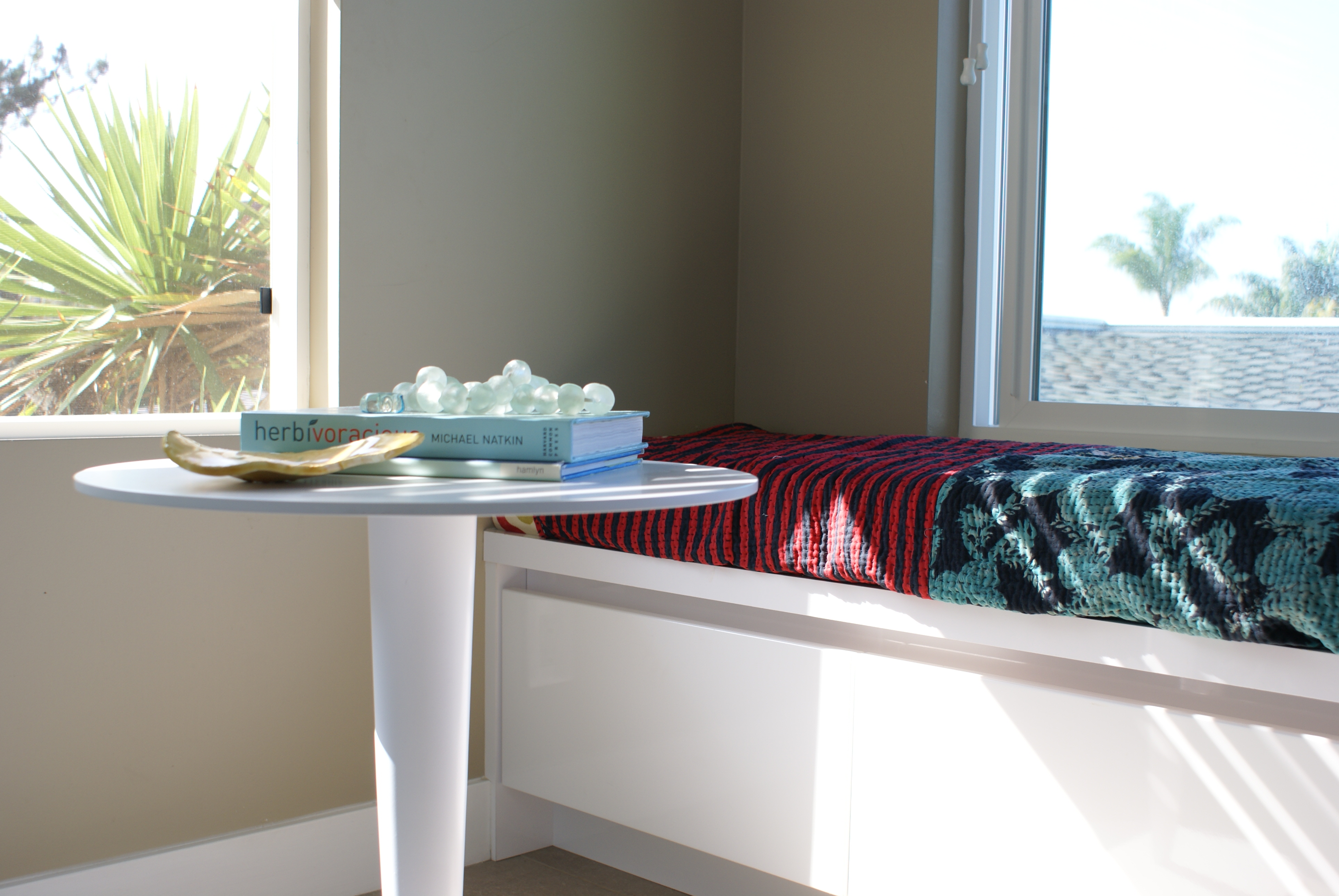 I actually like June Gloom–a little escape from the sun, plus the overcast infused with the horizon inspired me to paint the chairs the same hue. It is an invigorating space, thank you!