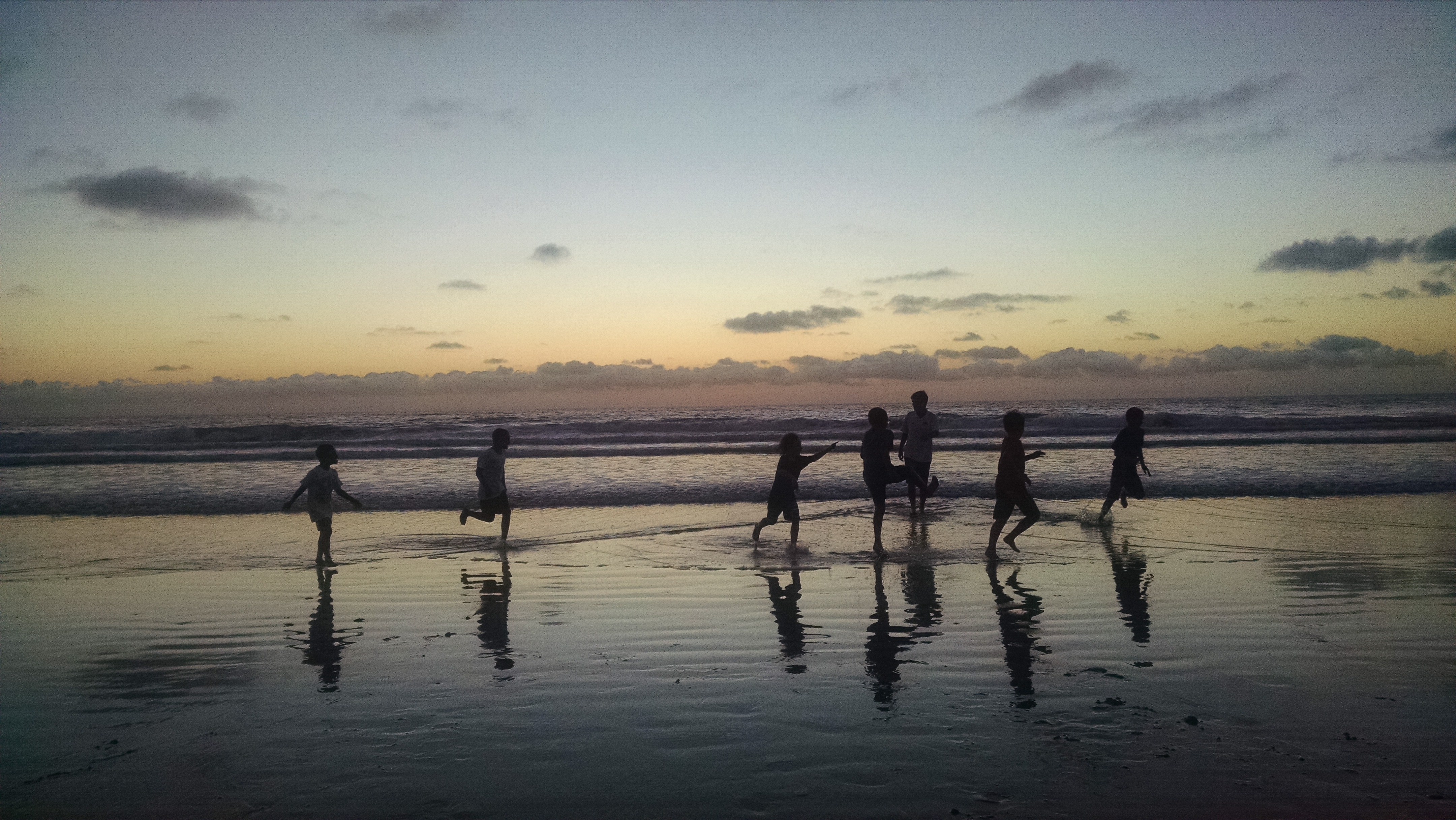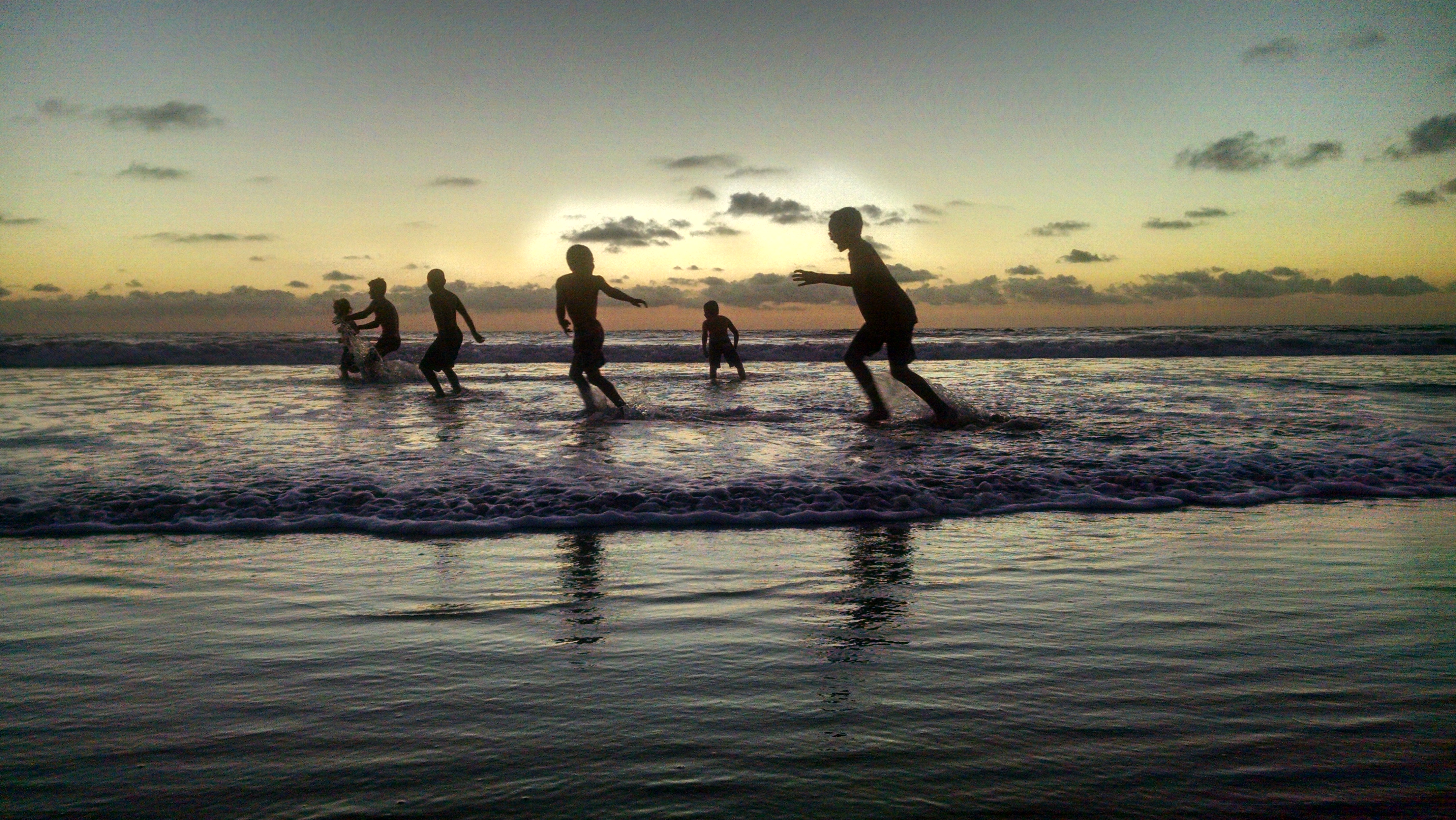 Older bear’s usual wrangling was not heard—instead screams of jubilation because instead of technique on the mat, they would perform drills on the sand. Just beneath the land of breathtaking crevasses, they raced until the biggest one in the gang, impishly stirred up a game of tag. Heels digging into the cool, wet sand, hip-deep into the surprisingly warm evening water, even coach let up his guard just this once. After all we are flashing shadows, barely footed to catch our breaths and the wilderness of the ocean recoils the toughest of us into our penitent and pint-sized realm.