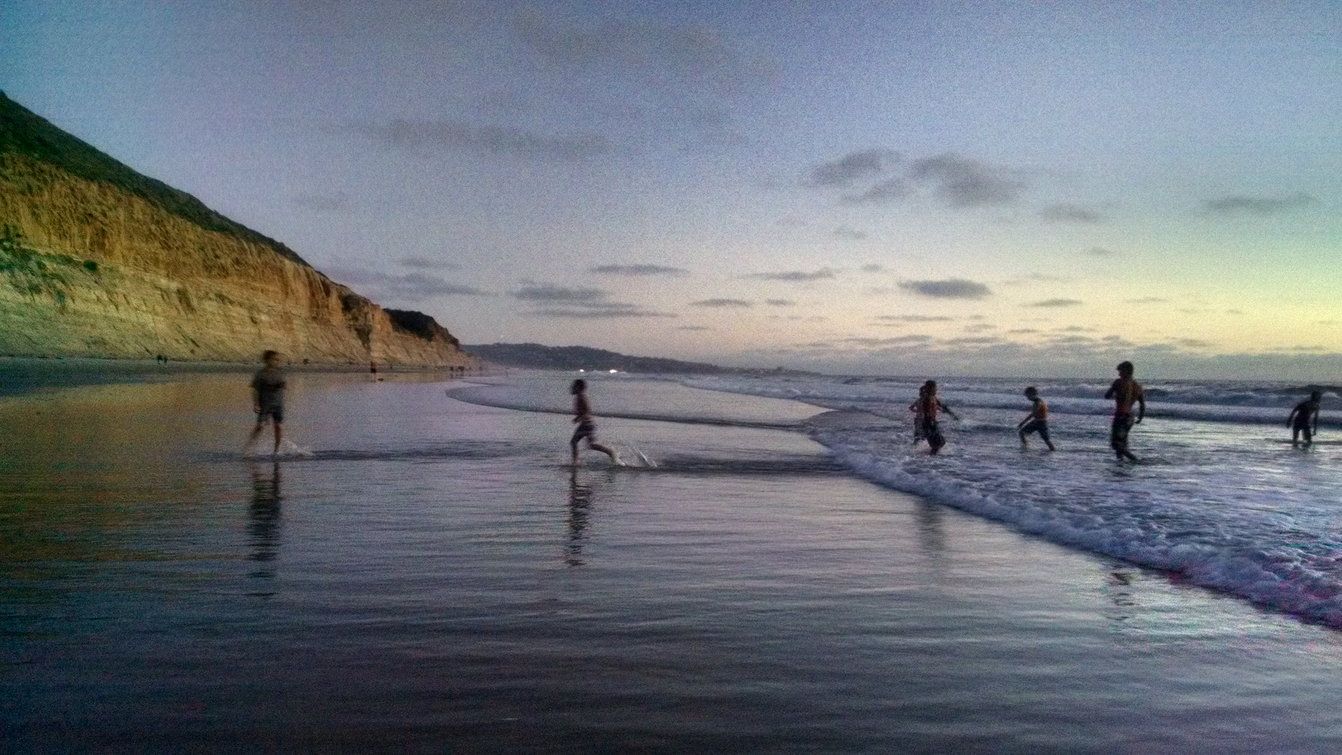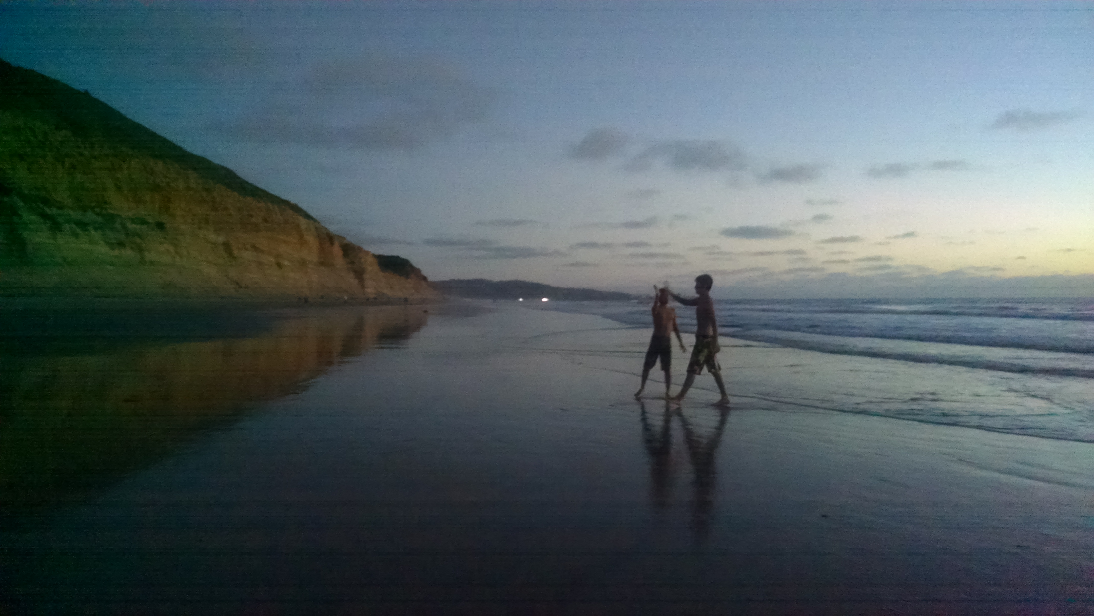 The stink of seaweed instead of an armpit, the thrashing of the waves instead of toughened bodies, the dew from the Pacific instead of perspiration from the pours of adversaries were all espoused cravings from the norm. My favorite time to bask on the beach is when dusk creeps into the scene. The sky is most dramatic, the water the warmest, the children the giddiest and parents grateful for making it through another round. Usually I stare trance-like beyond the horizon and dream, but tonight is a special night with an extraordinary amount of giddiness. Happy frolicking wherever life may lead you.