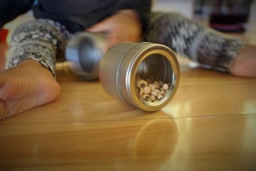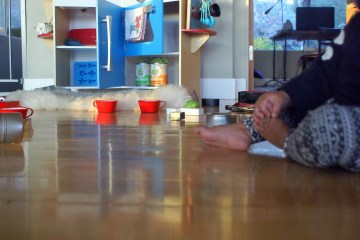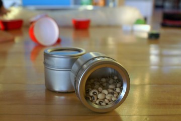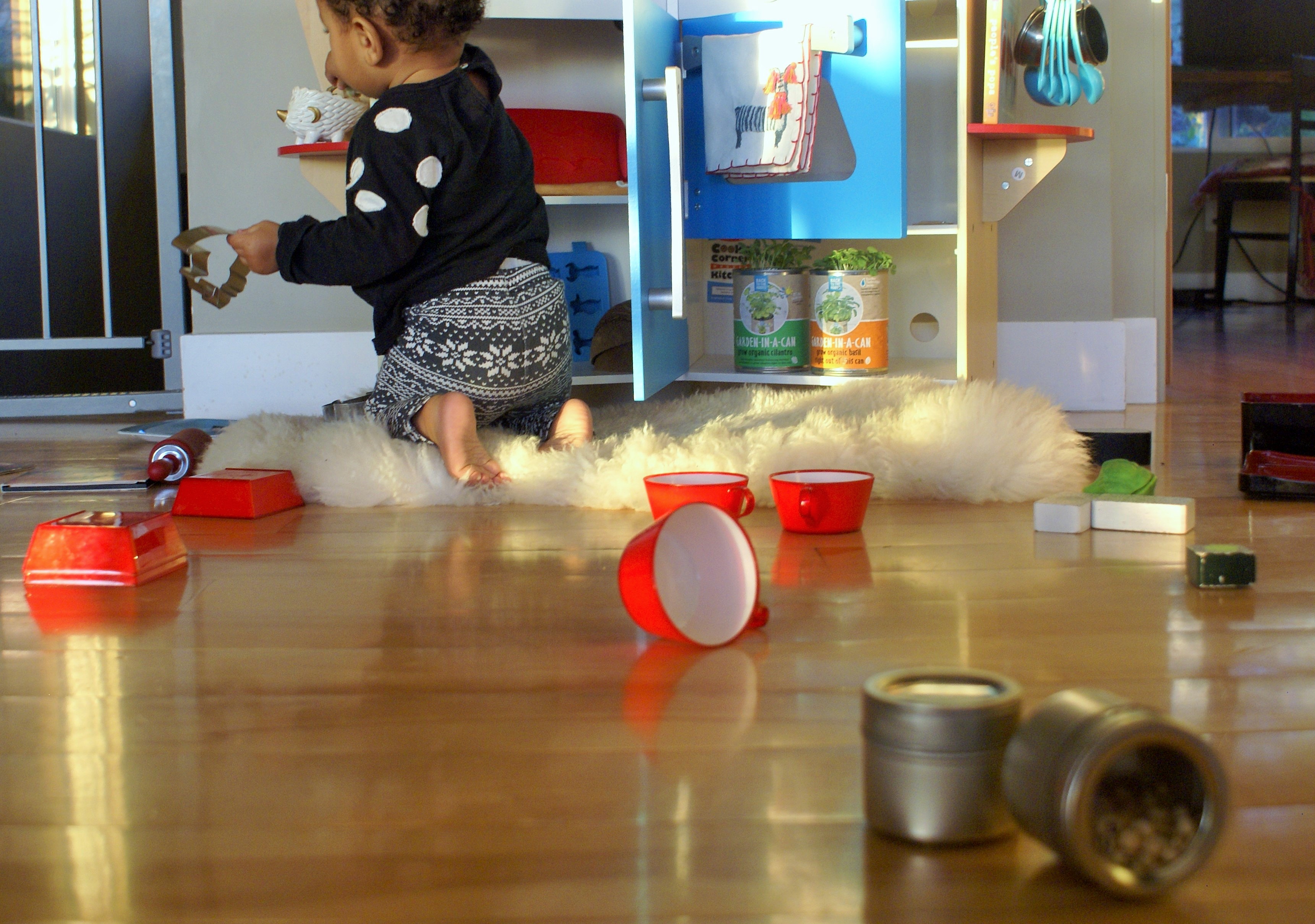 While she hankers in her new galley, it gives me a few more minutes to spare in mine to de-grease the stove, deep clean the sink or even to create a few more morsels for us to snack. So far it has deterred her from her mischievous enterprises of exploring items in the nest, even the most tantalizing ones. She stacks cups but prefers disassembling everything. As another distraction, I transformed spice canisters into shakers. In order to invite good luck into our new year, I added lucky ingredients of black eye peas and lentils into the tins.The inspiration for this colorful little nook was tendered by older bears’ artworks—lively, playful and no downtime in this space.