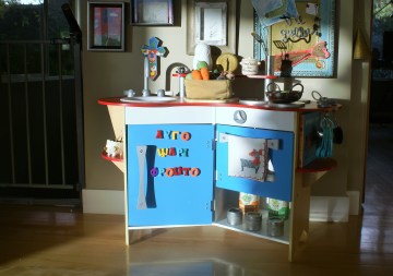 What a wonderful kitchen set. I had one for my boys when they were little–just a plastic one–but they loved it. The way they played with it, I expected them to want to learn how to cook when they were older. But unfortunately as teenagers the only thing they want to do in the kitchen is eat!