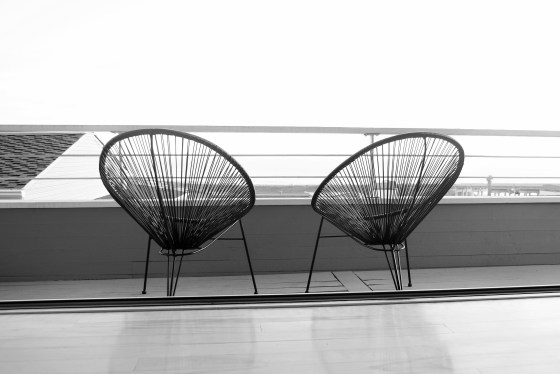 finally I was brave enough to stage furniture on the balcony since baby bear is developing a sense of fear. No flat platforms like a table for her to climb and sproing off, but these are irrefutably dreamy.
