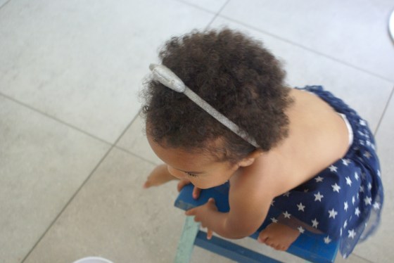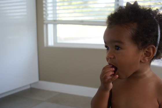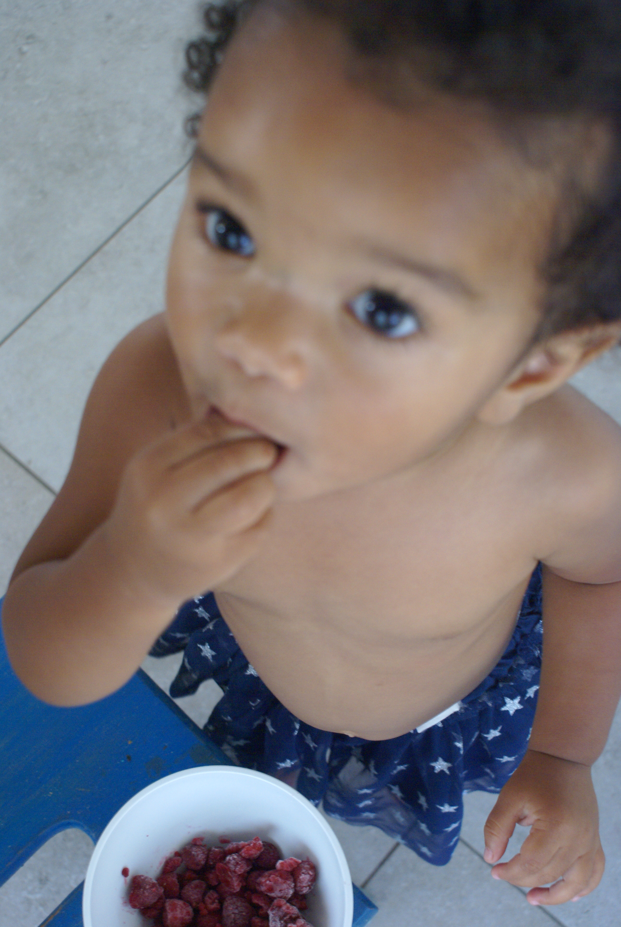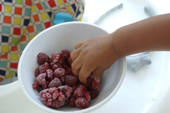 1. What a cutie pie! I love that you can just BE with her and enjoy the way she moves through her morning. It seems these months are always too short in a baby bear’s life, so it’s even more special that you’re drinking them up! I love frozen berries myself, but raspberries can be tart, so it seems even more surprising to me that she really enjoys them. You and I could share a nice long tirade on the state of the food supply, Cristina. I’m so bothered in so many ways. I have a weekly organic produce box that helps with the summer fruit sweetness, but the whole GMO labeling issue, among other things, twists me into a knot! We do what we can…and I am continually trying to learn more–but the more I learn, the more frustrated I can become. LOL! See? I told you I could venture into a tirade. I think we’re at least fortunate that here in California some of the better food sources are at least still affordable. And before I go for now…you have me eating fried eggs again, cooked with your very distinctive flair. I’ve been telling everyone! 🙂