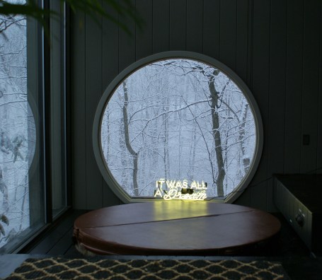 The trees were a sight to see that evening the snow came down but by morning it was gone. Windows are great when soccer balls don’t fly into them and the room with the circular one is quite toasty because it’s a modest size and the door is always closed….the rest of the nest…well it needs some serious insulation.