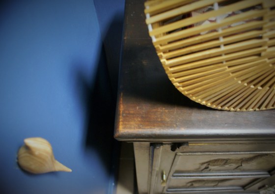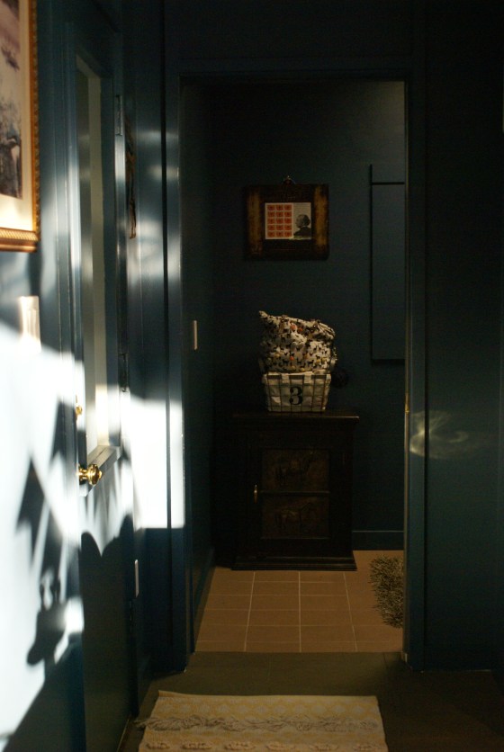 It’s a perfect landing for my purse and makes for a fast get-away when we need to jet out. (I can’t imagine walking into my nest with a floor to ceiling rack of cleaning items ogling me…it would create unnecessary angst before I could put down my purse!) Inside the cabinet there is room for laundry detergent, baking soda and baby bear’s diaper bag and snack bag. It never looked better dressed with my seasonal accessory and a fresh couple of coats of a dark hue enfolding it.
