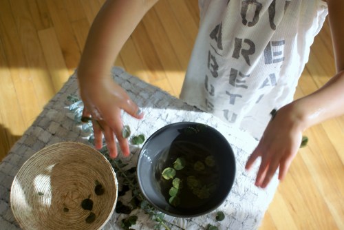 There are worst things, I tell myself, and hold back my comment of, “Don’t make it a habit.” In the adjacent room the couch cushion is off to a slant; ready for toddler acrobatics and perhaps a jittery middle schooler.  I remained in the kitchen to restore some order and maybe without a podcast on, I would loose myself to thoughts, inspiration perhaps while the smell of eucalyptus wafts in the air. A few little drops in the humidifier to lift the spirits and distract me from the rooms that crave a fresh and vibrant coat.A neighborhood joint would be ideal tomorrow evening, the one where the mixolgist knows me by name and doesn’t have to ask what I would like to drink while I wait for a bowl full of ramen.Then again I am tired of defending myself from the cold with an extra layer of wool, and the hat that saves me from doing a thing to my coif because it doesn’t come off until I’m back in the warm and toasty nest. I’ve felt a sense of guilt corralling little bear in the nest, as cozy as it is with bone broth simmering for days on the stove top while eager bodies season their bowls adding black rice noodles and ladling the steamy broth. Stirring warily, we watch the cumin, turmeric and pepper flakes swirl. Next generous squeezes of lemon juice, spritzes of aminos and tamari mingle with its humble counterparts to satisfy our taste buds and slowly thaw our bones.I haven’t been able to gather the entire brood, but museum hopping with two of the three bears, mostly one, has been a big hit. The newborn sloth won our hearts at the Aviary, and the indoor slides gave us a run for the money, since our only couch (note: said couch doubles for a trampoline and slide when cushion is off to the side) is currently the napping place for middle bear who is infected with a virus. Sometimes self-care hits us hard and knocks us down, even the most energetic of us fall. Adding a few drops of eucalyptus oil (even better if you can visit a farmer’s market or floral shop for some fresh and supple eucalyptus leaves) in a steamy bowl are just what middle bear’s lungs need right now.Even if you are not ailing, welcoming this heavenly scent through your pores will revitalize you from seasonal dreariness. For your edification and delight I will share my steam ritual to make February a little more bearable. Add some extra water to your teapot when making tea and pour a steamy bowl. Place eucalyptus leaves if on hand or a few drops of oil and place towel over head to create steam tent. Breathe deeply and enjoy 5-15 minutes; take this time to completely clear the mind or set intentions and offer gratitude. Strain remaining leaves to enhance your next bath. It’s a vibrant and powerful scent so you may not want to revere the steam before you lay your head to rest. Be gentle with yourself, enjoy a few moments of luxury. Don’t let go of those moments, they are just a few minutes in your day, because you may not see the sun for days.