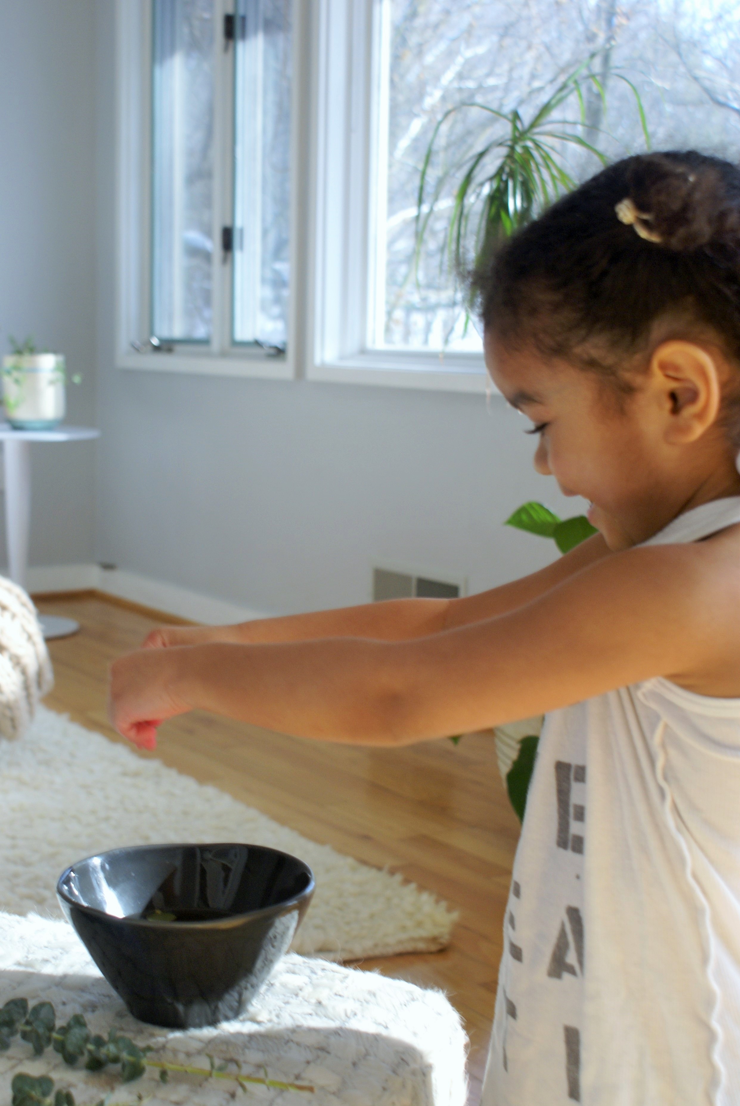 There are worst things, I tell myself, and hold back my comment of, “Don’t make it a habit.” In the adjacent room the couch cushion is off to a slant; ready for toddler acrobatics and perhaps a jittery middle schooler.  I remained in the kitchen to restore some order and maybe without a podcast on, I would loose myself to thoughts, inspiration perhaps while the smell of eucalyptus wafts in the air. A few little drops in the humidifier to lift the spirits and distract me from the rooms that crave a fresh and vibrant coat.A neighborhood joint would be ideal tomorrow evening, the one where the mixolgist knows me by name and doesn’t have to ask what I would like to drink while I wait for a bowl full of ramen.Then again I am tired of defending myself from the cold with an extra layer of wool, and the hat that saves me from doing a thing to my coif because it doesn’t come off until I’m back in the warm and toasty nest. I’ve felt a sense of guilt corralling little bear in the nest, as cozy as it is with bone broth simmering for days on the stove top while eager bodies season their bowls adding black rice noodles and ladling the steamy broth. Stirring warily, we watch the cumin, turmeric and pepper flakes swirl. Next generous squeezes of lemon juice, spritzes of aminos and tamari mingle with its humble counterparts to satisfy our taste buds and slowly thaw our bones.I haven’t been able to gather the entire brood, but museum hopping with two of the three bears, mostly one, has been a big hit. The newborn sloth won our hearts at the Aviary, and the indoor slides gave us a run for the money, since our only couch (note: said couch doubles for a trampoline and slide when cushion is off to the side) is currently the napping place for middle bear who is infected with a virus. Sometimes self-care hits us hard and knocks us down, even the most energetic of us fall. Adding a few drops of eucalyptus oil (even better if you can visit a farmer’s market or floral shop for some fresh and supple eucalyptus leaves) in a steamy bowl are just what middle bear’s lungs need right now.Even if you are not ailing, welcoming this heavenly scent through your pores will revitalize you from seasonal dreariness. For your edification and delight I will share my steam ritual to make February a little more bearable. Add some extra water to your teapot when making tea and pour a steamy bowl. Place eucalyptus leaves if on hand or a few drops of oil and place towel over head to create steam tent. Breathe deeply and enjoy 5-15 minutes; take this time to completely clear the mind or set intentions and offer gratitude. Strain remaining leaves to enhance your next bath. It’s a vibrant and powerful scent so you may not want to revere the steam before you lay your head to rest. Be gentle with yourself, enjoy a few moments of luxury. Don’t let go of those moments, they are just a few minutes in your day, because you may not see the sun for days.