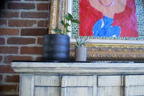 And so this forsaken furnishing with a little attention, care and imagination transformed from trash to treasure. Layers of paint and more layers of grime; no doubt it’s chock full of hazardous lead paint. Do I encapsulate with a special primer or assign this perilous task to a specialist? I opt to crack open a few windows and do not attempt to strip the high glossed paint but instead paint over lightly as to not disturb any particles. With feather like strokes and a rag I managed to highlight the grain lines with a darker color to contrast the insipid hue previously chosen.
