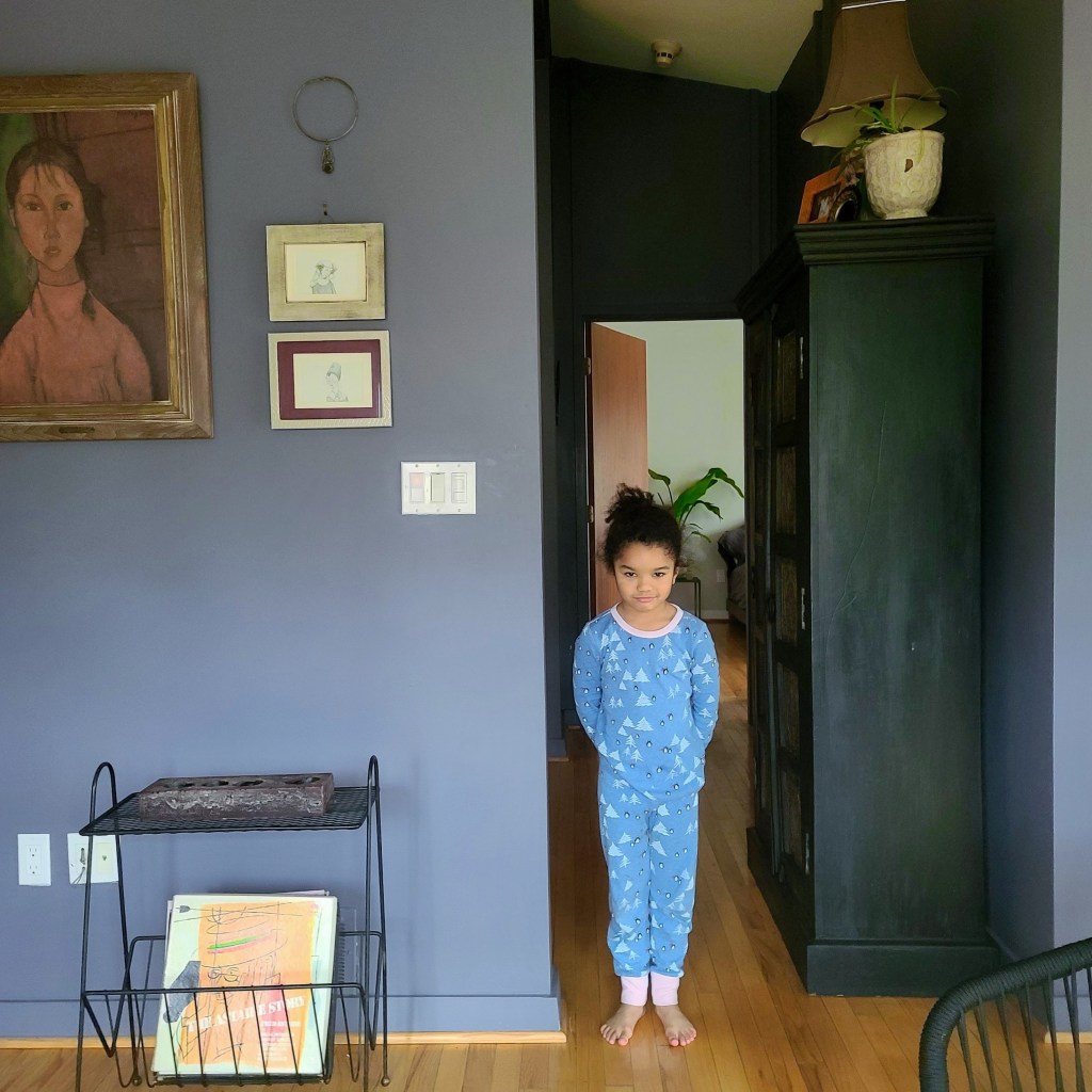 to march into the holidays. While downloading and saving these photos, I was mystified by Baby Bear’s expression and gate and how it resembled Girl with Pigtails. It is said we find influences and copy them. Since the cold front, we have spent our mornings indoors in this nook. Without hesitation, we emulate from people around us and our surroundings, especially a young mind. I have been fortunate to salute these art pieces with residually grateful fleeting glimpses in between deep breaths, yoga stretches, and impromptu inventive games created by yours truly, Baby Bear. While ignited with a snapshot moment of our spot, she mastered her role of Amedeo Clemente Modigliani’s long-necked girl in her photo bombings. Just like Modigliani’s rakish stylization and succulent choice of colors that is easy to enjoy, I believe my innocent and well-intentioned spontaneous subject is certainly content about her choices this morning at this juncture. There is something insistent about Baby Bear and all the subjects on my walls, as if they want you to know about what it is they are feeling. I chose not to leave pigtail girl alone and convoy her with a pair of women drafted from the dexterous hands of Maribel. Sketching is a skill my friend is inherently good at, although don’t be fooled that’s not where her talent ends. I’ll post soon about her latest venture. Get out there and find influences and make them your own…take it from Baby Bear and unleash your infinite light. Now more than ever is the time to claim your power, nothing will overcome you if you stay true to who you are.