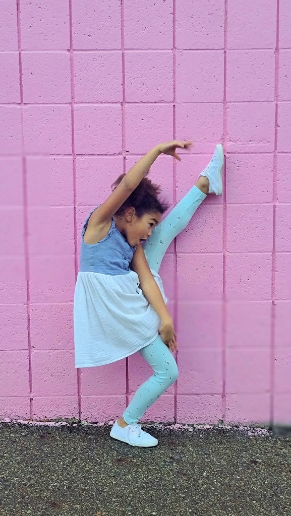What do we do when we come across a glowing pink façade? We use it as a living canvass and spell out our name with our torso and limbs, twisting, torquing and stretching. It’s a good thing we are flexible, it makes for recognizable letters. Yet another effort in whittling away at our weariness that’s creeping in as we enter the heart of the frostiest of seasons. A little more variety, a little more stimulation, a little more playfulness and a whole lot less of screen time is our ultimate goal. Got any good ideas for us? We are all ears.