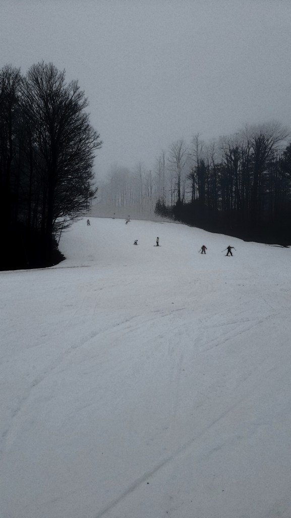 Look what we got today, not a whole lot but a significant amount to call it the first heavenly fall of the season. Light and breezy is how they all floated down. It’s a mixed emotion this first wintery wonderland, enthralling at first but not so fun when all your digits freeze. We do like powdery hills. Some of us like to go full speed ahead without stops or turns, others like to zigzag along to the bottom and black-diamond-girl, well she’s just getting the hang of it. She’ll zigzag and once we hit the steep slope it’s in between my snowplough skis all the way down the last leg. I can’t do too many black diamond runs with a couple of extra skis in between mine but girlfriend could go on forever like this.