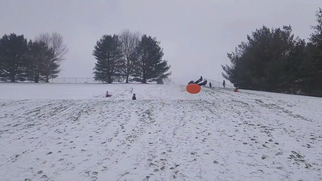 With a shear blanket of snow, for goodness sakes the patches of grass are more than visible, the stakes are quite low…or so we thought. Dare I say, we stood the test of time as temps rose to the double digits after days of zero and below and we could bear some fun on a just barely snow-covered hill. A frozen day is a still and quiet charge, just enough to ignite lift off— we have lift off yippee…not quite a lunar trajectory but a trajectory no doubt. I’d say it was a great day.