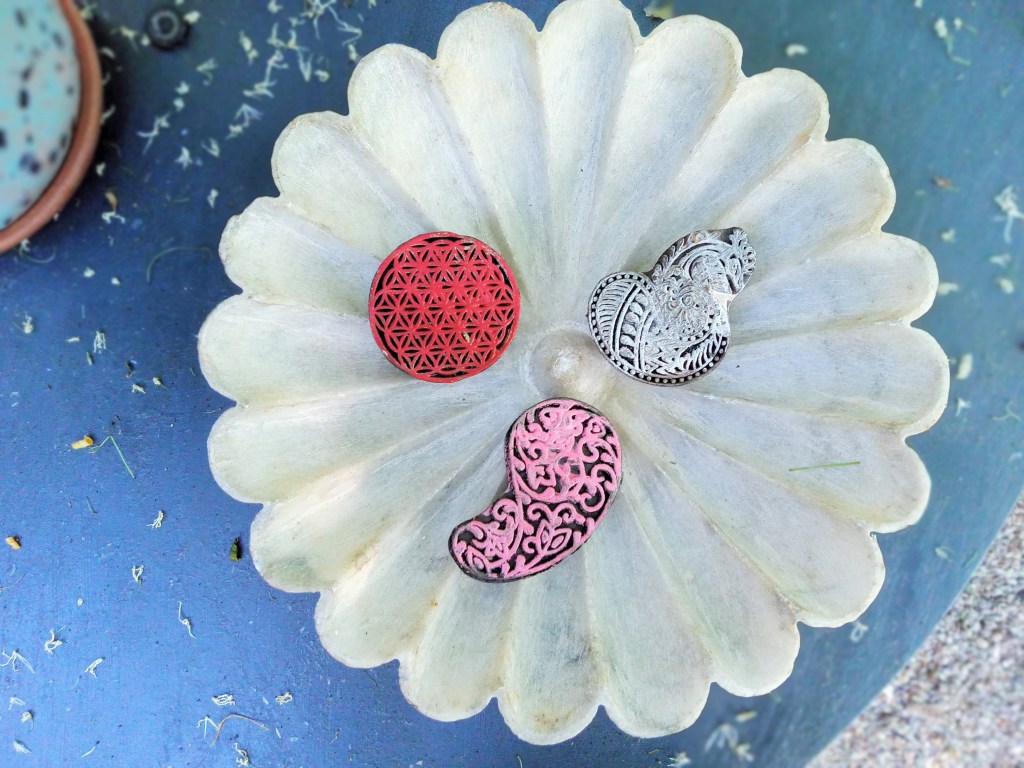 Another ten days full of brilliant sunshine, not quite summer yet but it sure feels like it thank goodness. First thing on the summer to-do list, ornamental notes and some homemade wrapping paper. Can you blame us? These stamps have their own charm. Keeping it simple; I can’t say our imprints will look simple. Stay tuned if you fancy us demonstrating our technique.