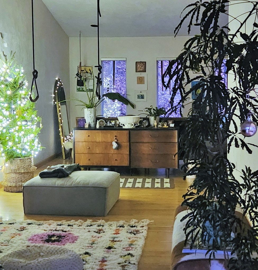 …and its grinch vibes. A gangly looking teenager of a tree, I was inclined to top it off with a shiny ornament…it’s officially a lively symbol of that ill-natured and disgruntled humanoid with a heart that is “two sizes too small.” Because we love to hate that someone, we love to shift the blame on someone because it’s somehow more fitting than for us to dig deep and uncover why we are sparked by another being or why we would allow them to mar any bit of our pleasure. It’s demeanor certainly isn’t dimming the light of the balsam…I mean look at her shine.