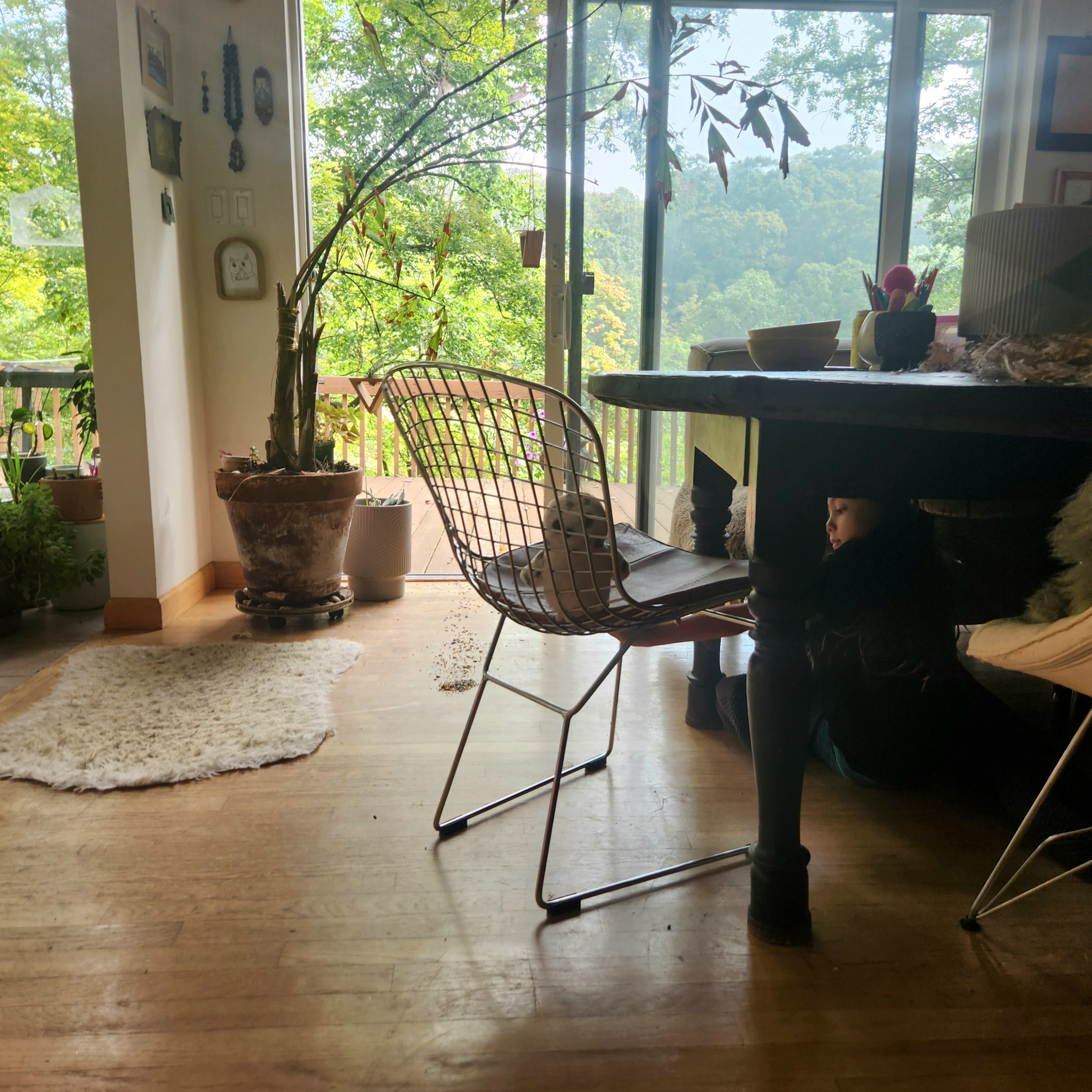 After a valiant effort, fauna from thinning morning fog landed on deck. From the premise, an afternoon of hide-n-go seek organically emereged. What ensued after witnessing feathered friends indeed pecking their way indoors…’twas next level thrills.